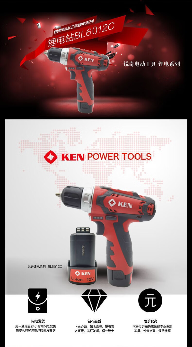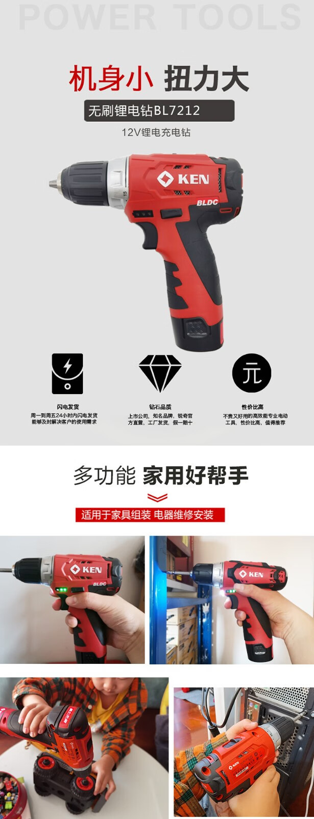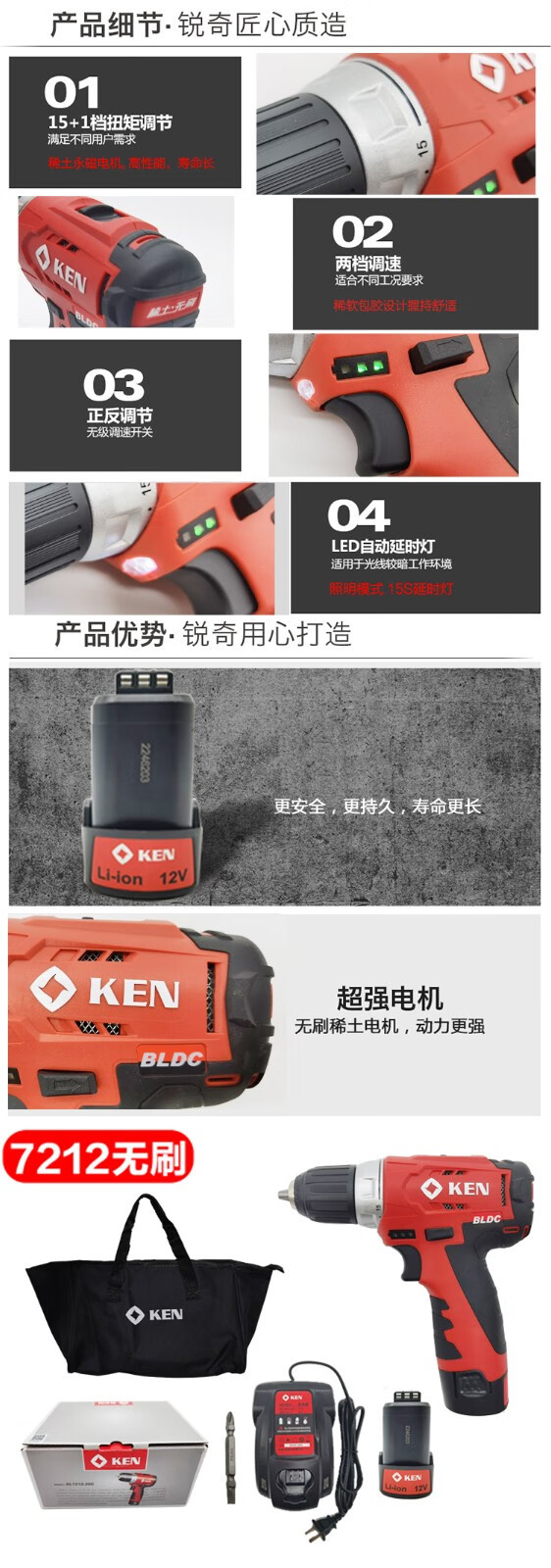 Ruichi KEN Ruichi 7212 taladro eléctrico de litio sin escobillas taladro eléctrico multifuncional casero destornillador eléctrico 601