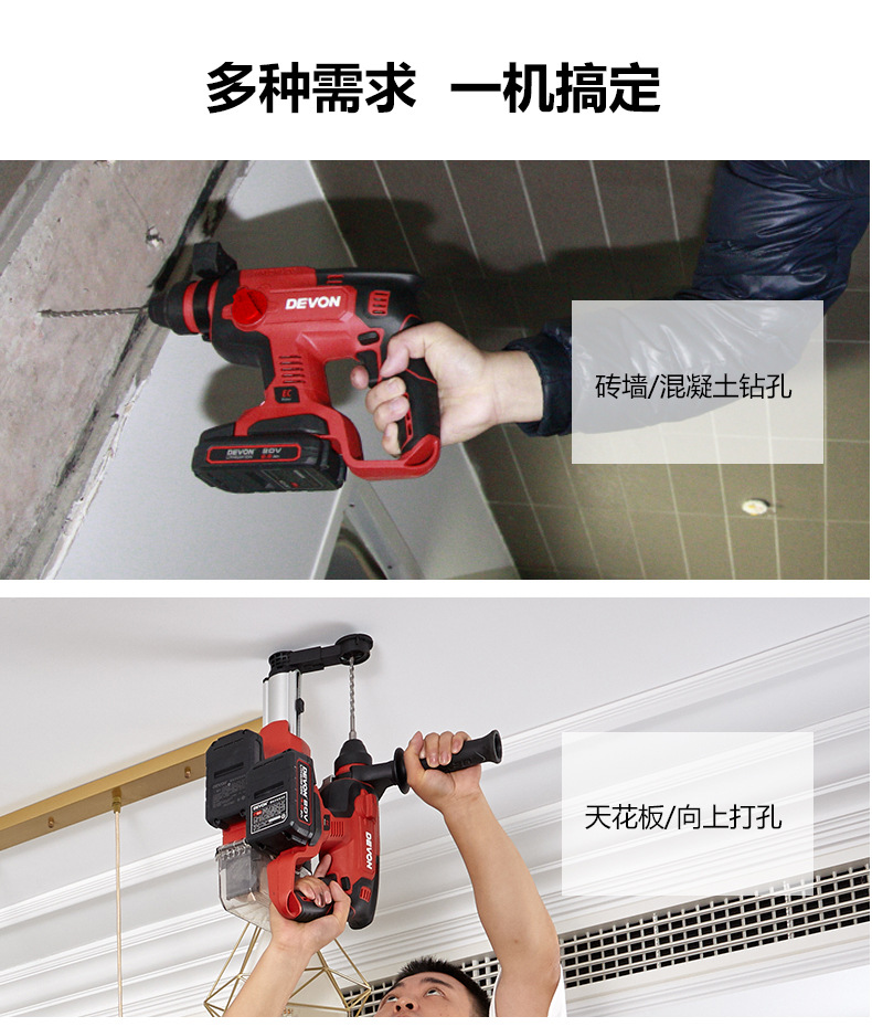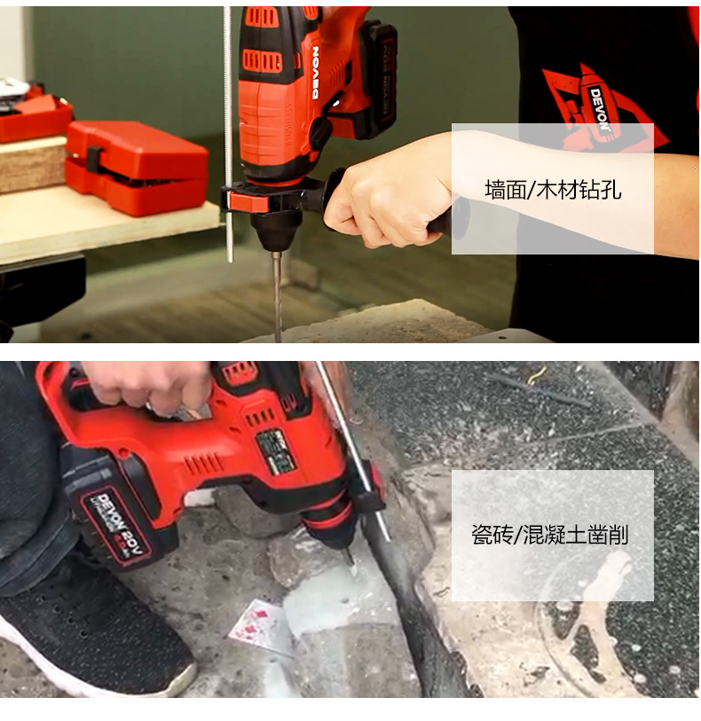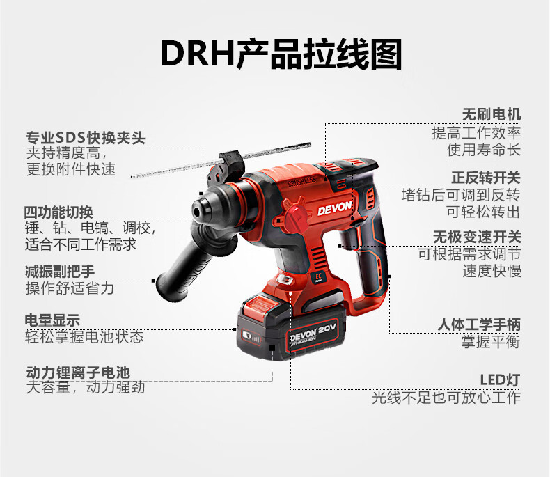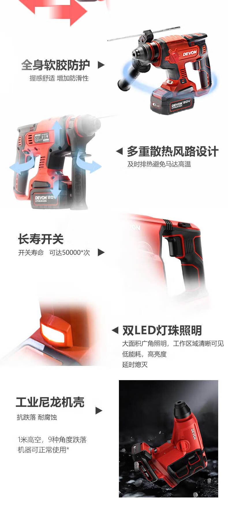 Lithium (Devon) 20V martillo multifuncional sin escobillas DRH hormigón de grado industrial perforación de perforación de martillo