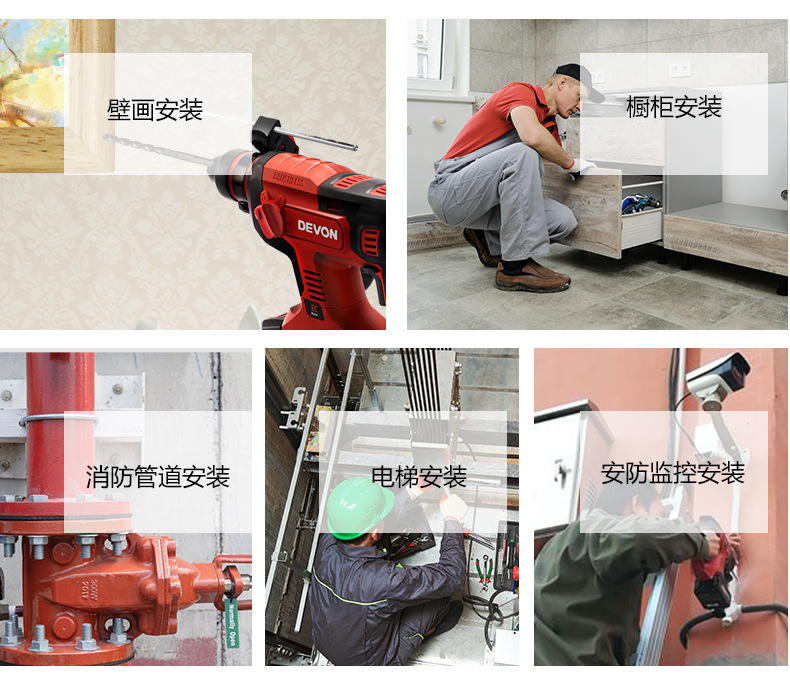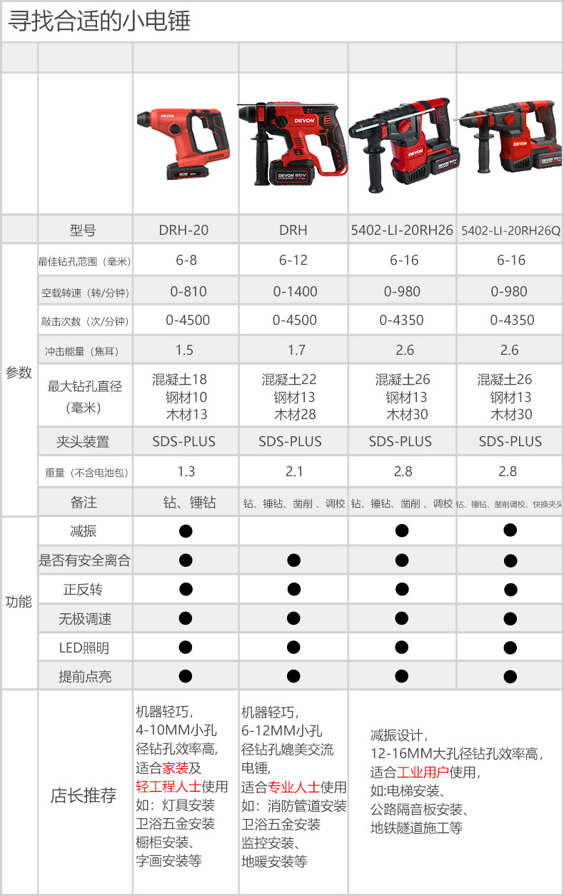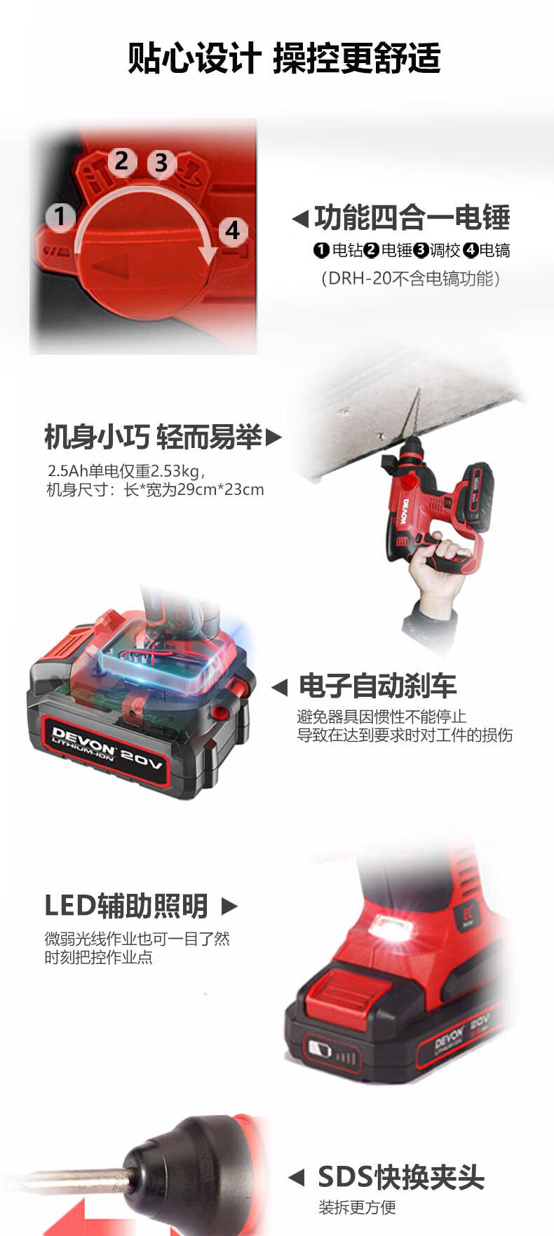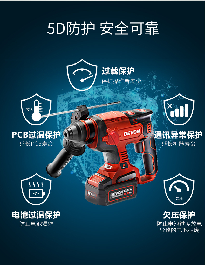 Lithium (Devon) 20V martillo multifuncional sin escobillas DRH hormigón de grado industrial perforación de perforación de martillo