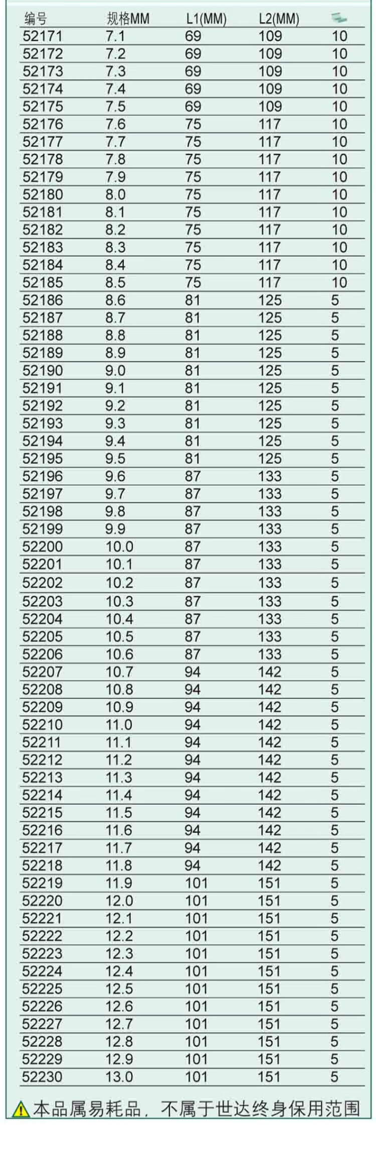 SATA 52175 conjunto de 10 piezas de broca torsional de mango recto resistente al desgaste 7,5 mm
