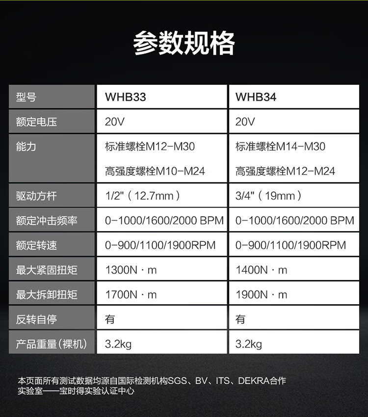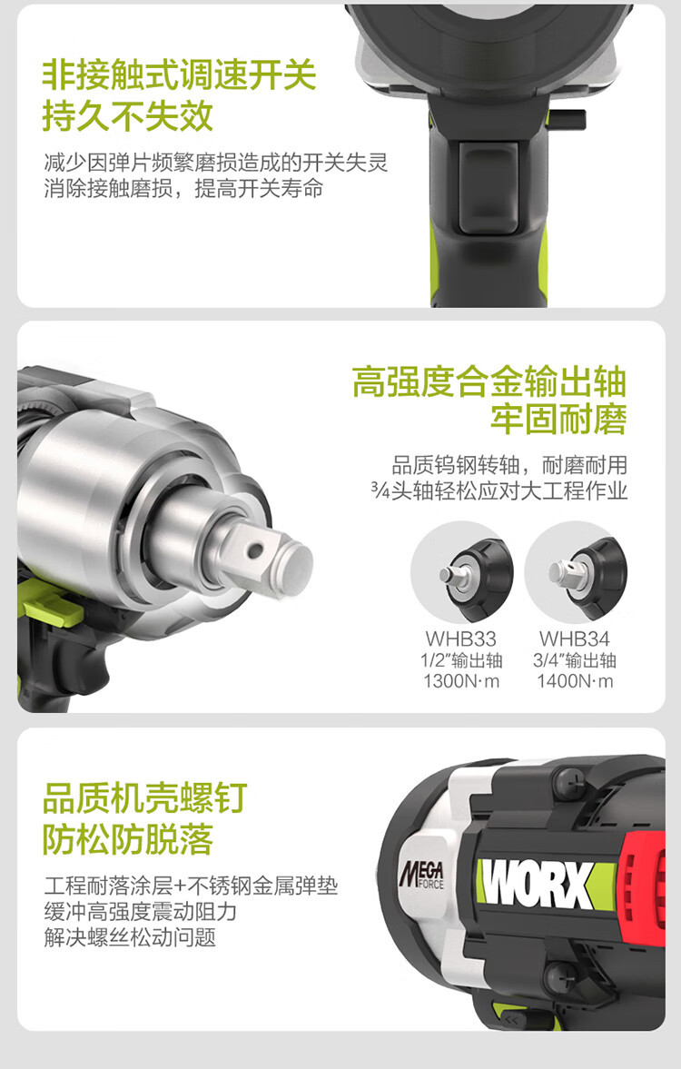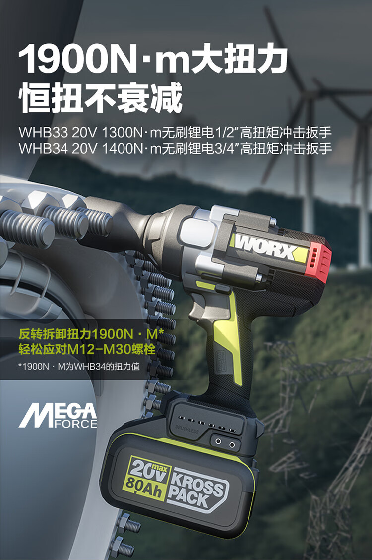 WIX 20V1300Nm Llave de impacto de litio sin escobillas de alto par WHB33.9