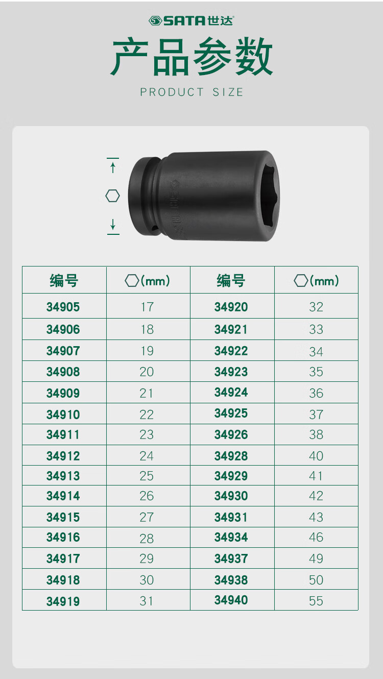 SATA 34908 serie de 1 pulgada hexagonal neumática manga larga 20MM