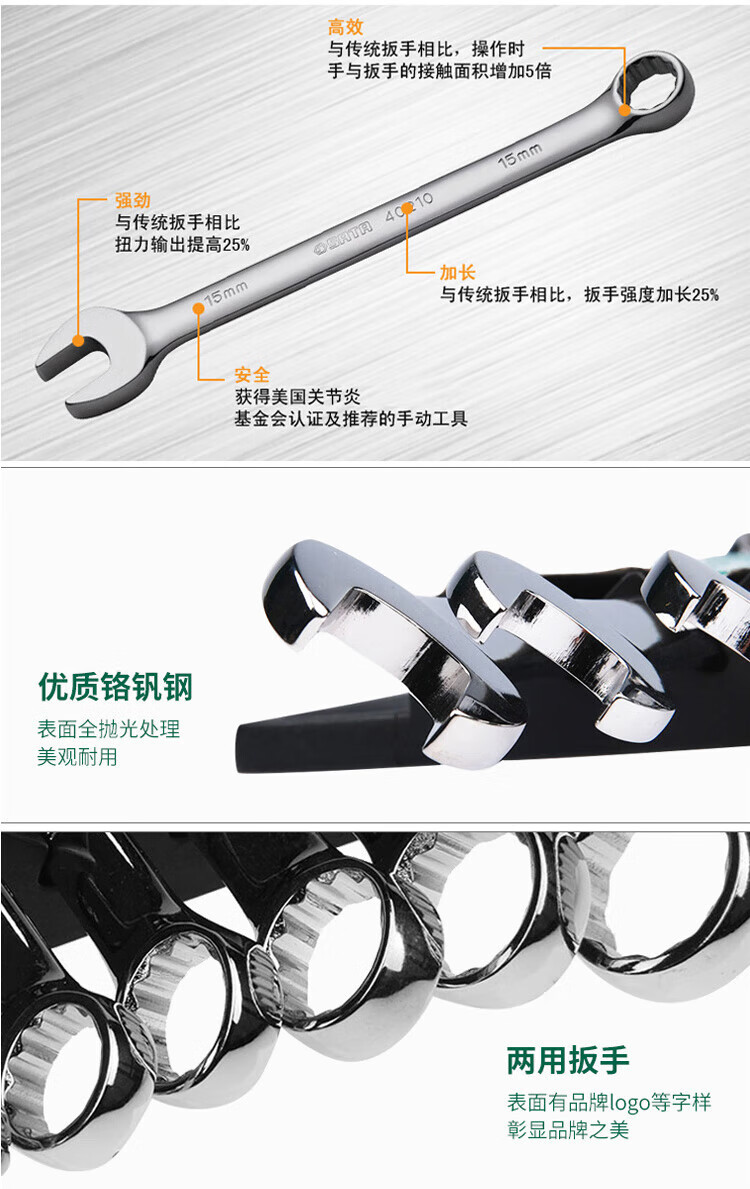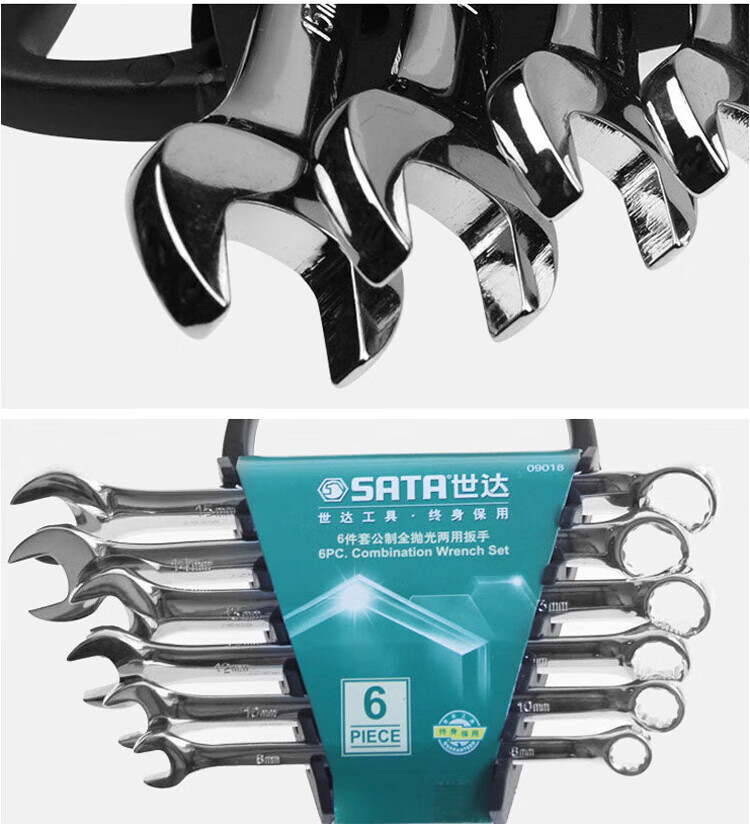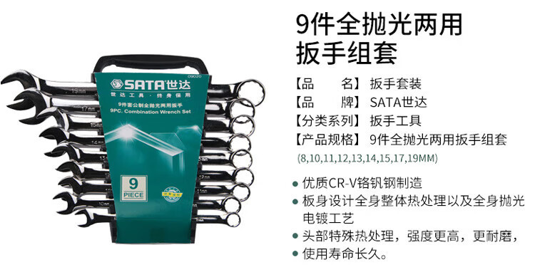 SATA 09020 9 piezas Imperial completo pulido conjunto de llave de doble propósito