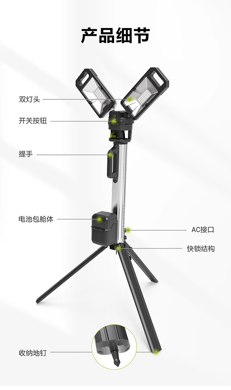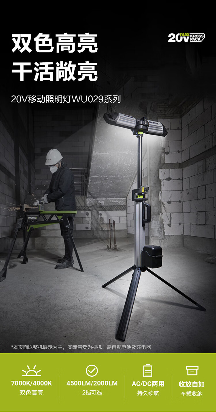 20V iluminación móvil de litio WU029 lámpara de soporte portátil recargable al aire libre lámpara de trabajo luz de luz de reflector