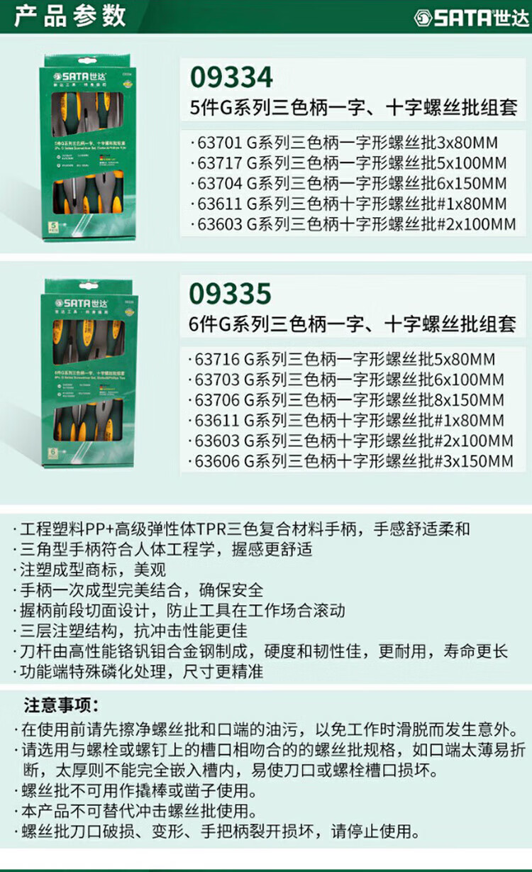 SATA 09335 6pcs serie G en forma de una palabra, conjunto de lote de tornillo cruzado