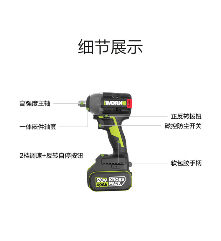 WEX 20V llave eléctrica sin escobillas WU289 (4.0 doble eléctrica) gran torsión carga torsión llave de impacto