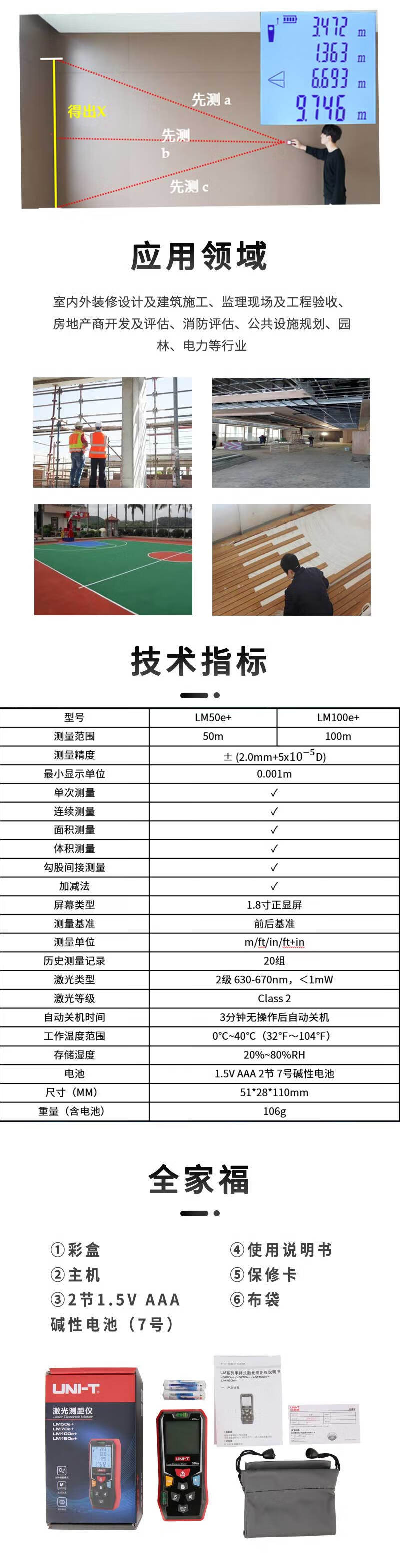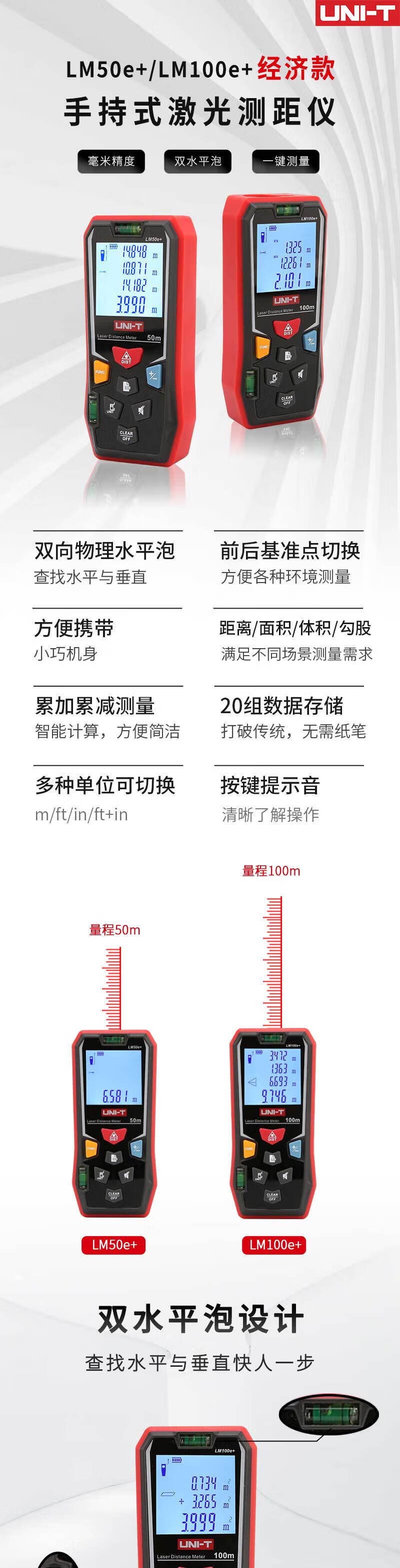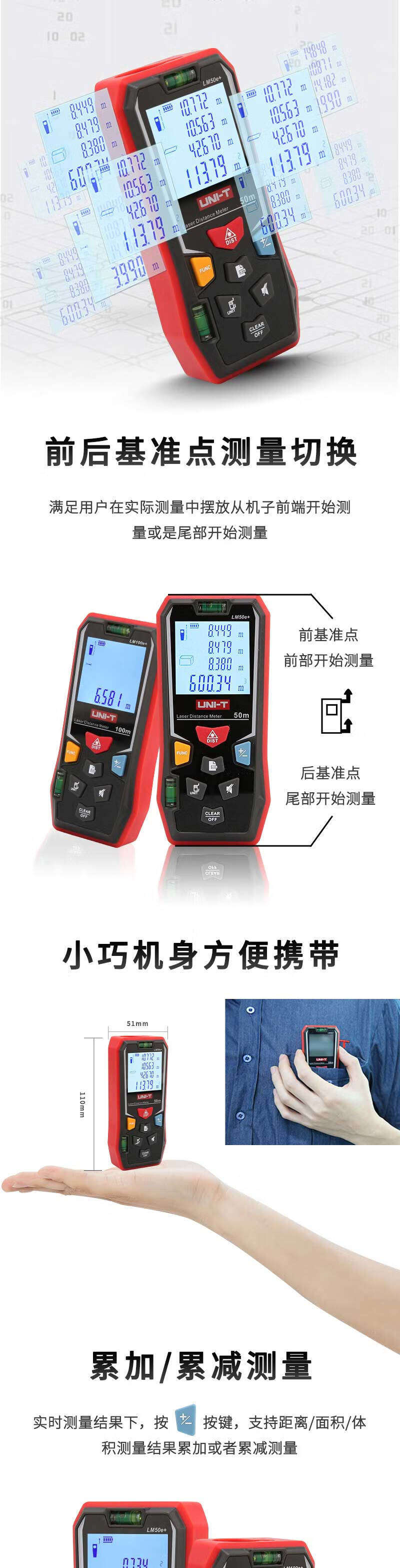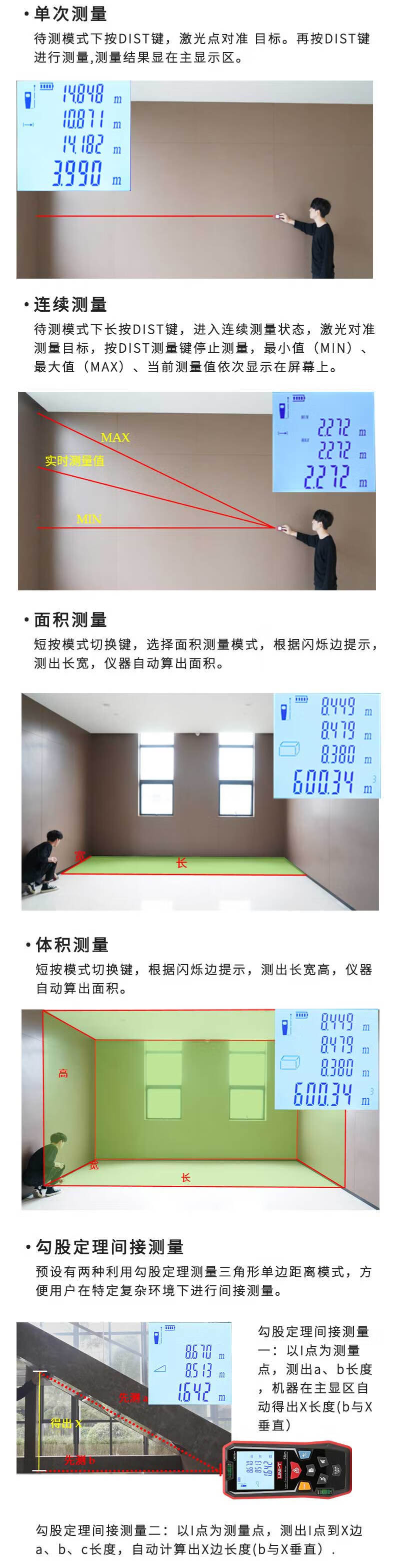 UID UNI-T LM100e + Rangolimeter láser de mano infrarrojo Método de habitación de mano 100