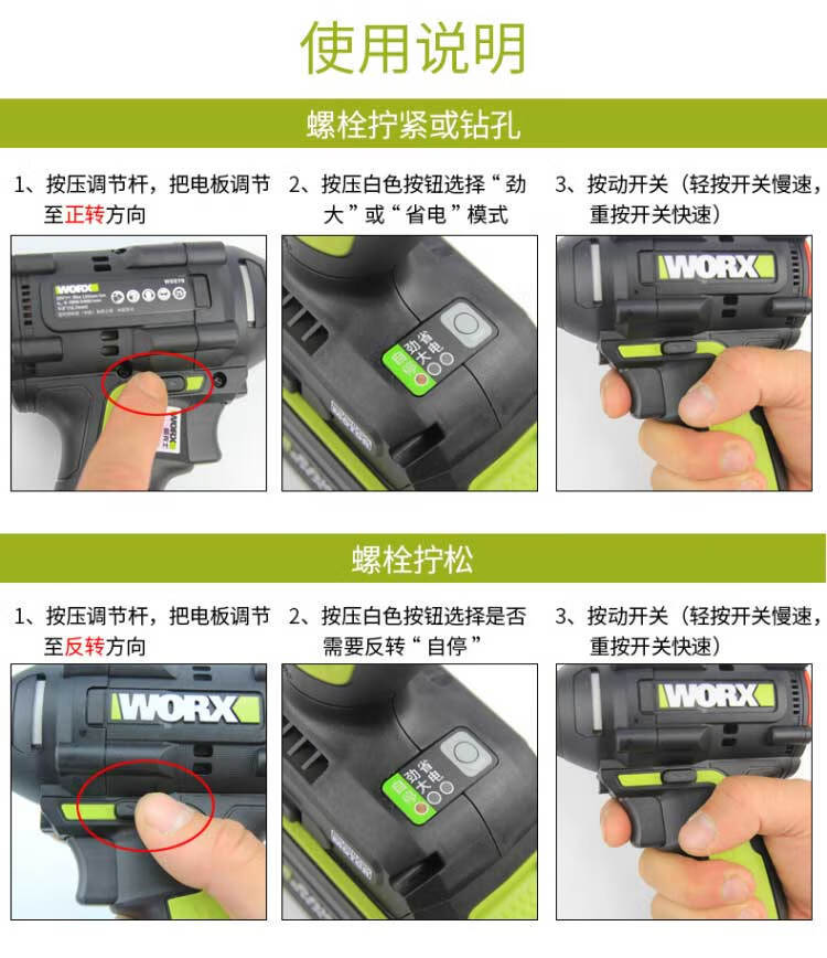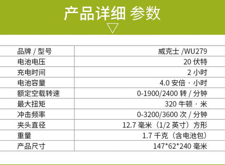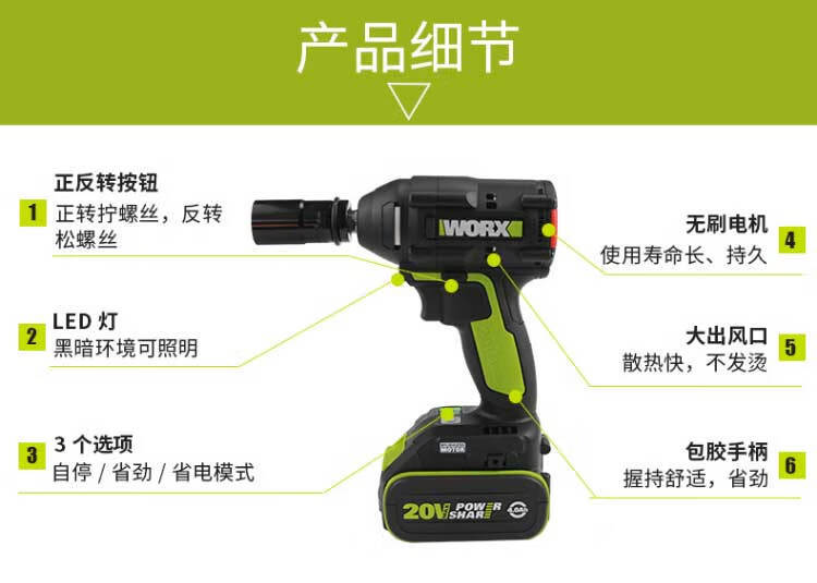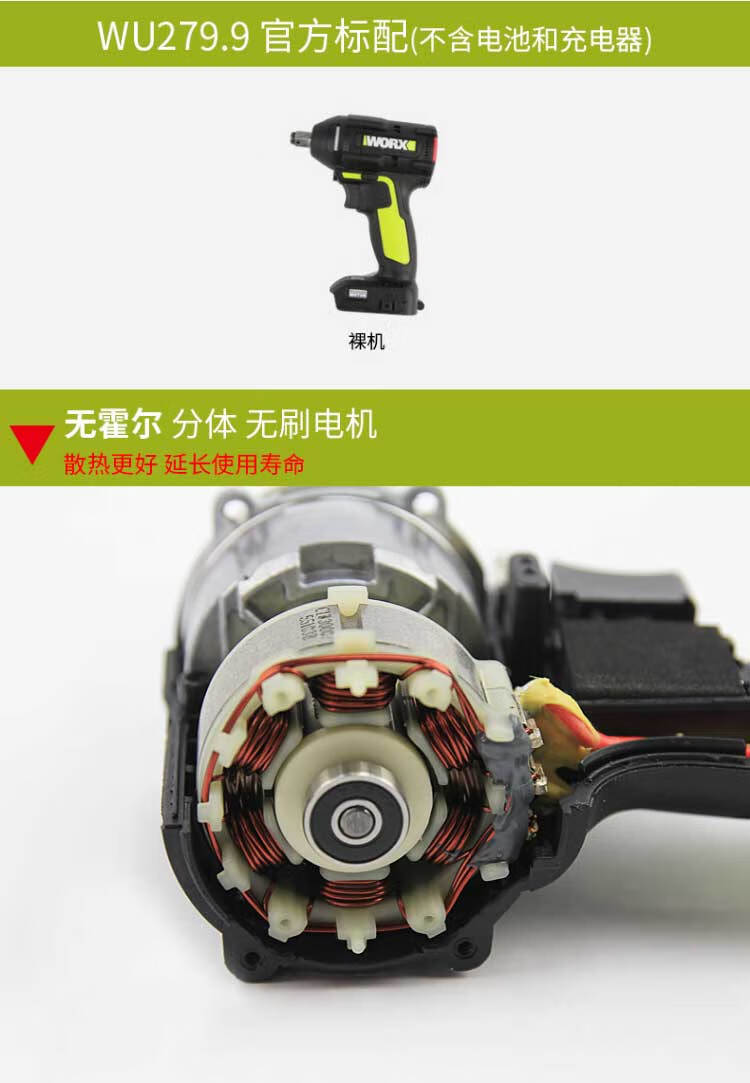 WEX WORX WU279.9 llave eléctrica sin escobillas industrial metal desnudo