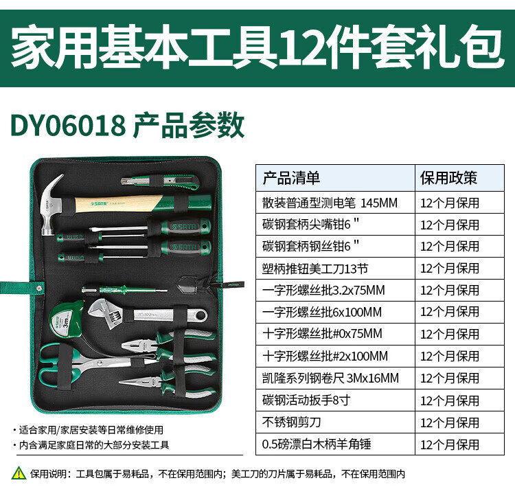 SATA DY06018 Kit de herramientas de reparación multifuncional eléctrica 12 piezas