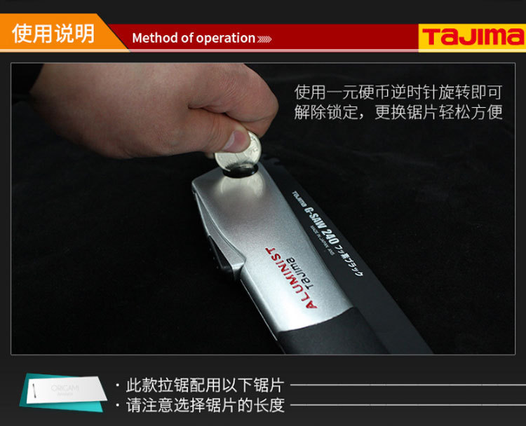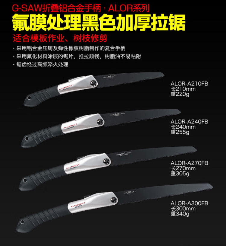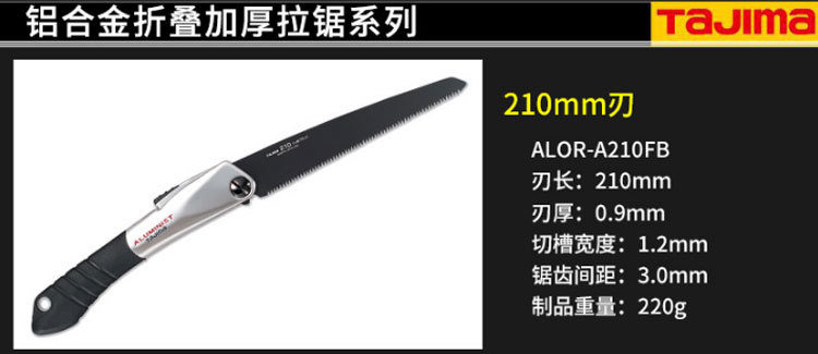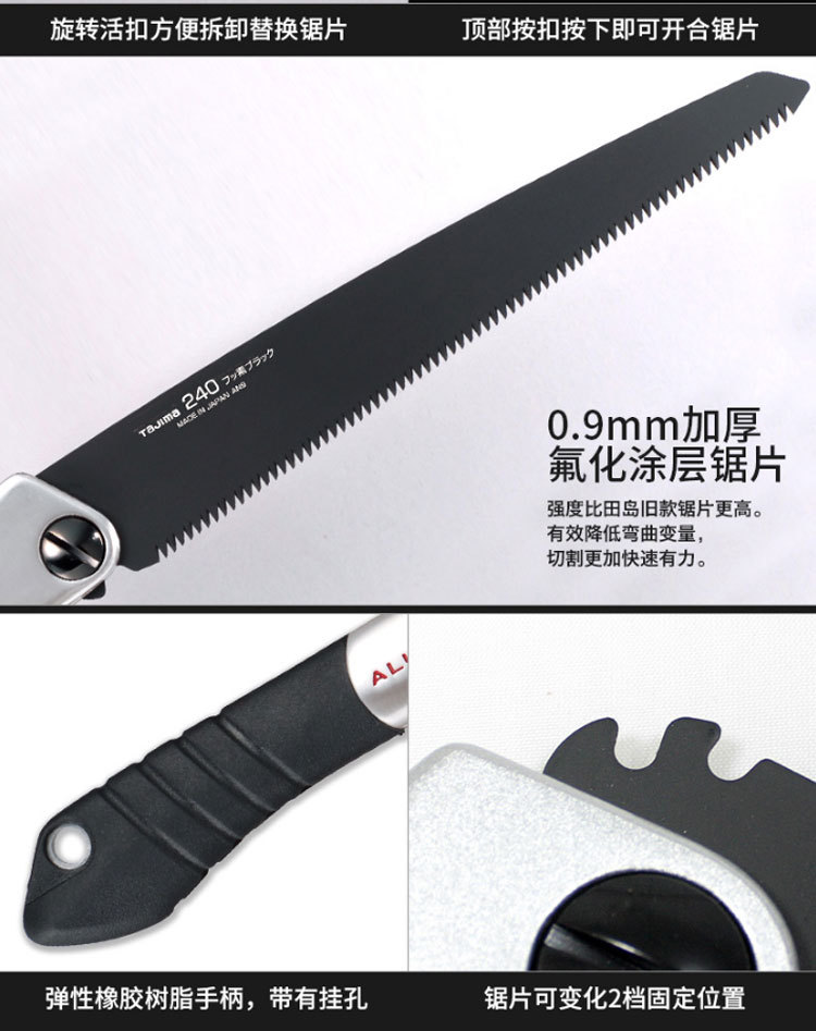 Tama TAJIMA 1103 - 2039 G-SAW plegable aluminio manija de fluoro tratamiento de película negro engrosado sierra de tracción2