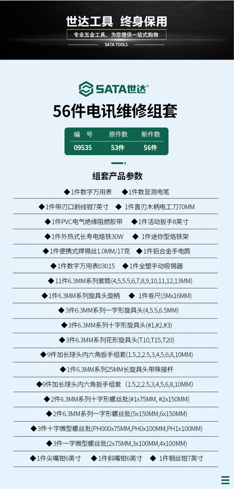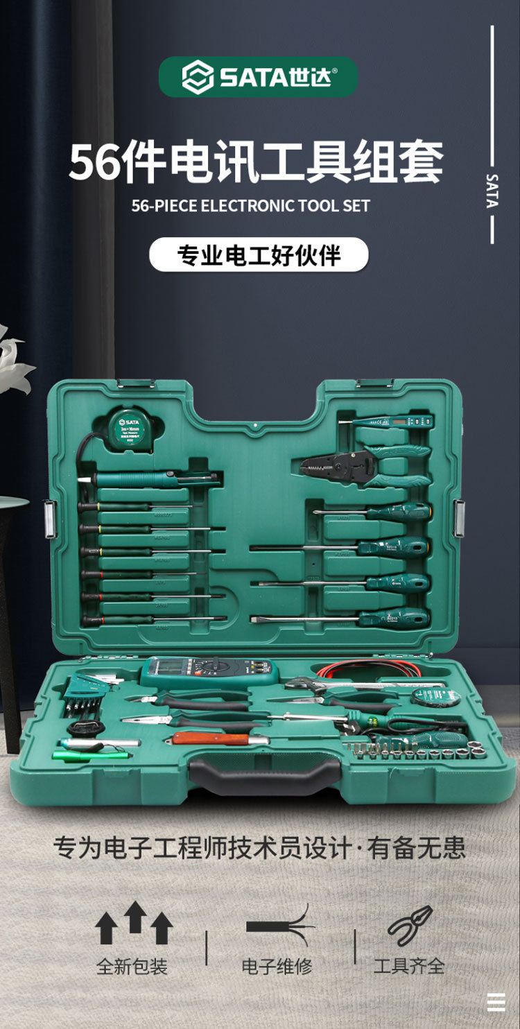 Set de herramientas de telecomunicaciones SATA 09535 de 56 piezas