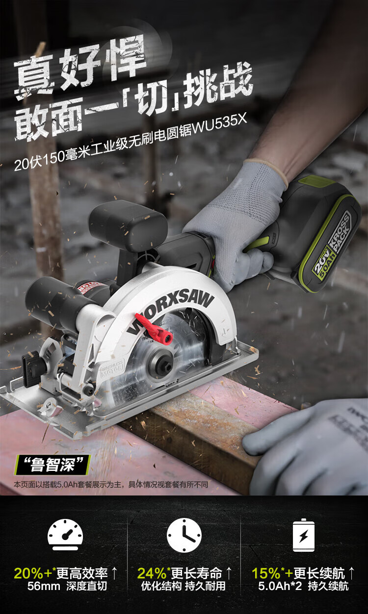 WEX WORX WU535X.2 sierra circular eléctrica sin escobillas (6.0 doble eléctrica) cortadora de litio carpintería sierra eléctrica