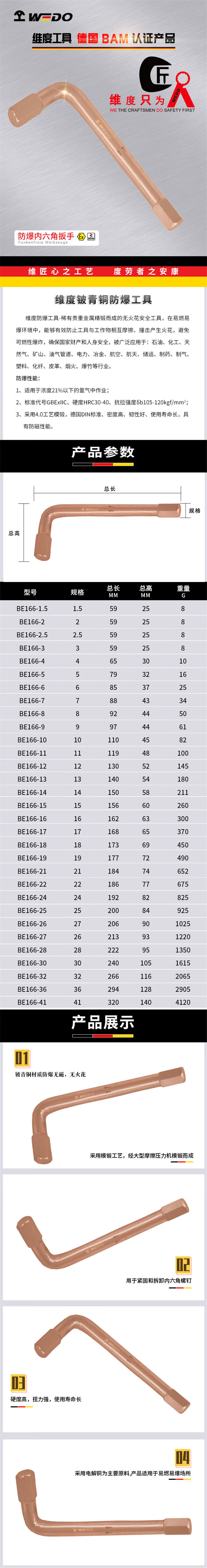 Dimensiones WEDO BE166 - 14 llave hexagonal a prueba de explosiones 14mm