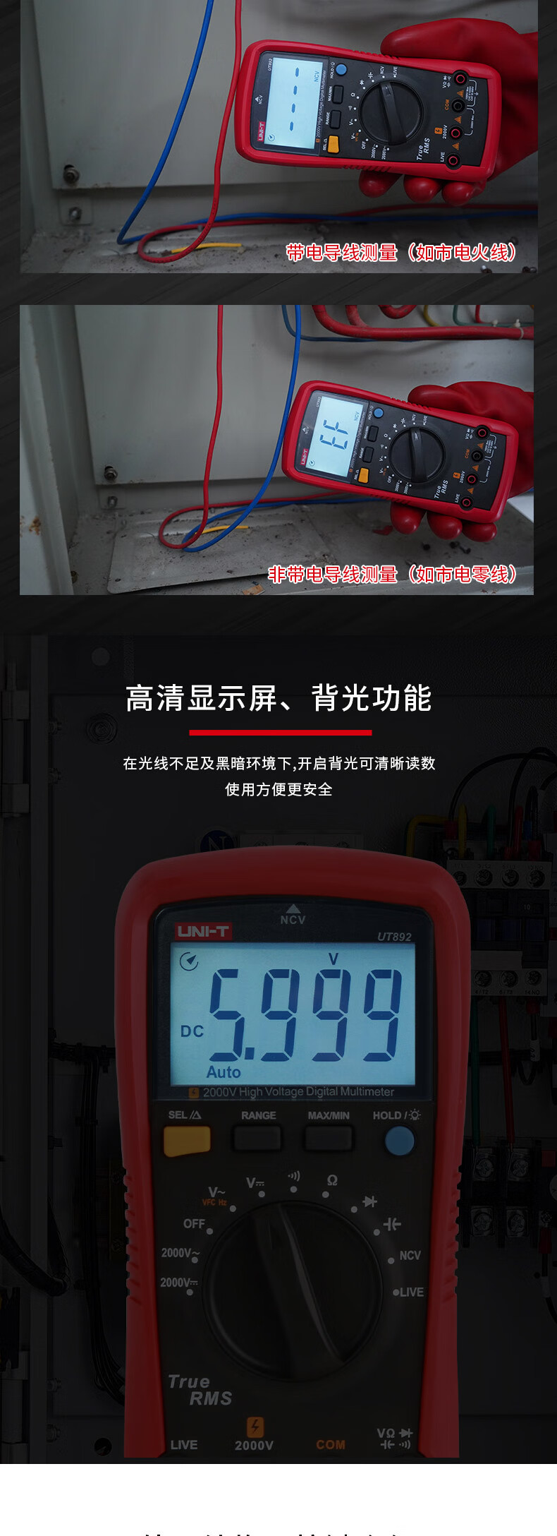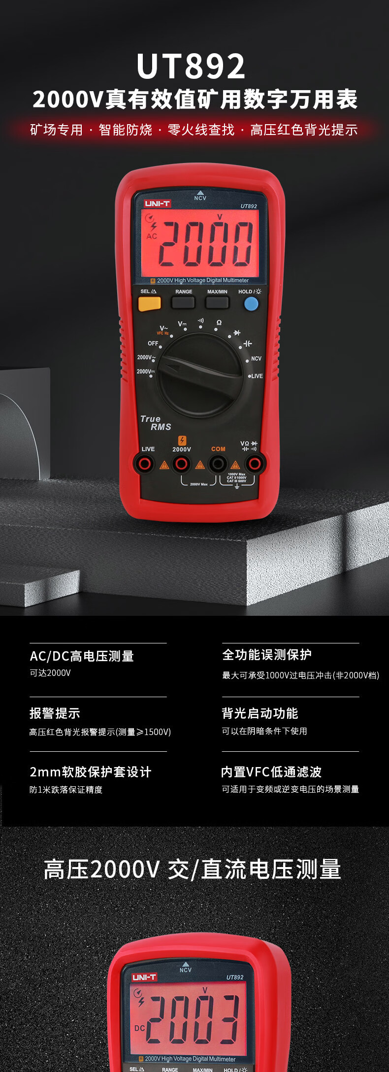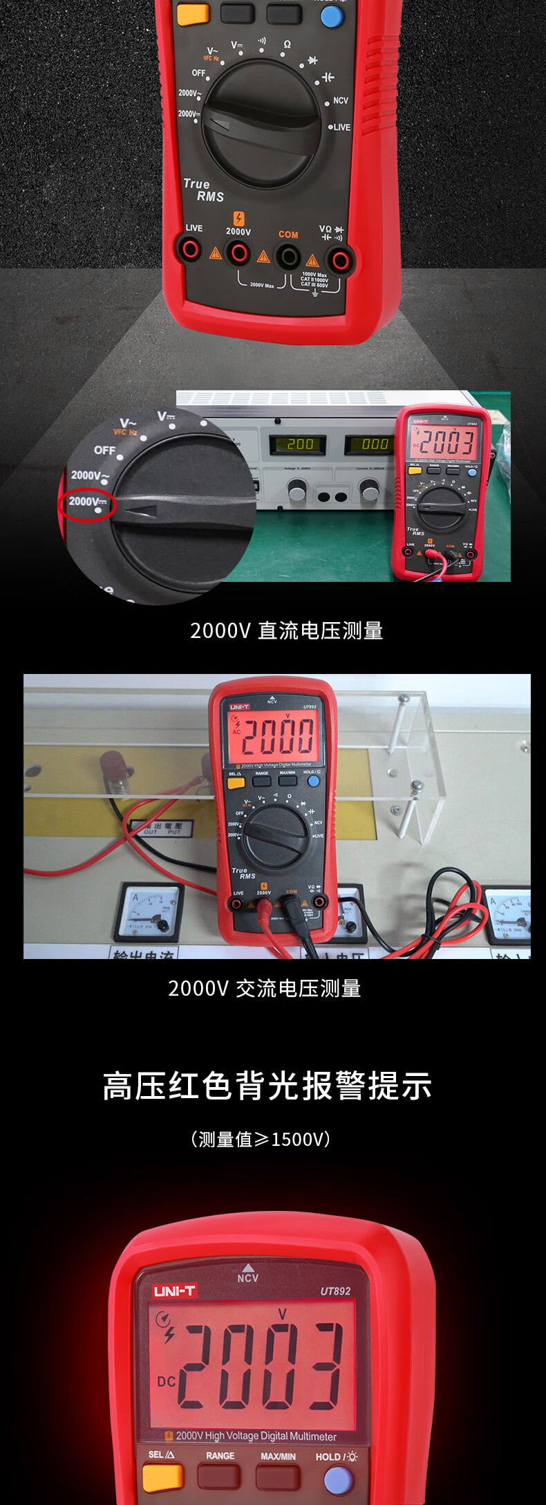 UNI-T UT892 2000V multímetro digital de alto voltaje de alta precisión anti-combustión inteligente AC / DC