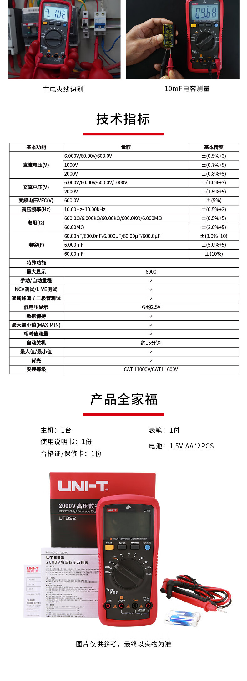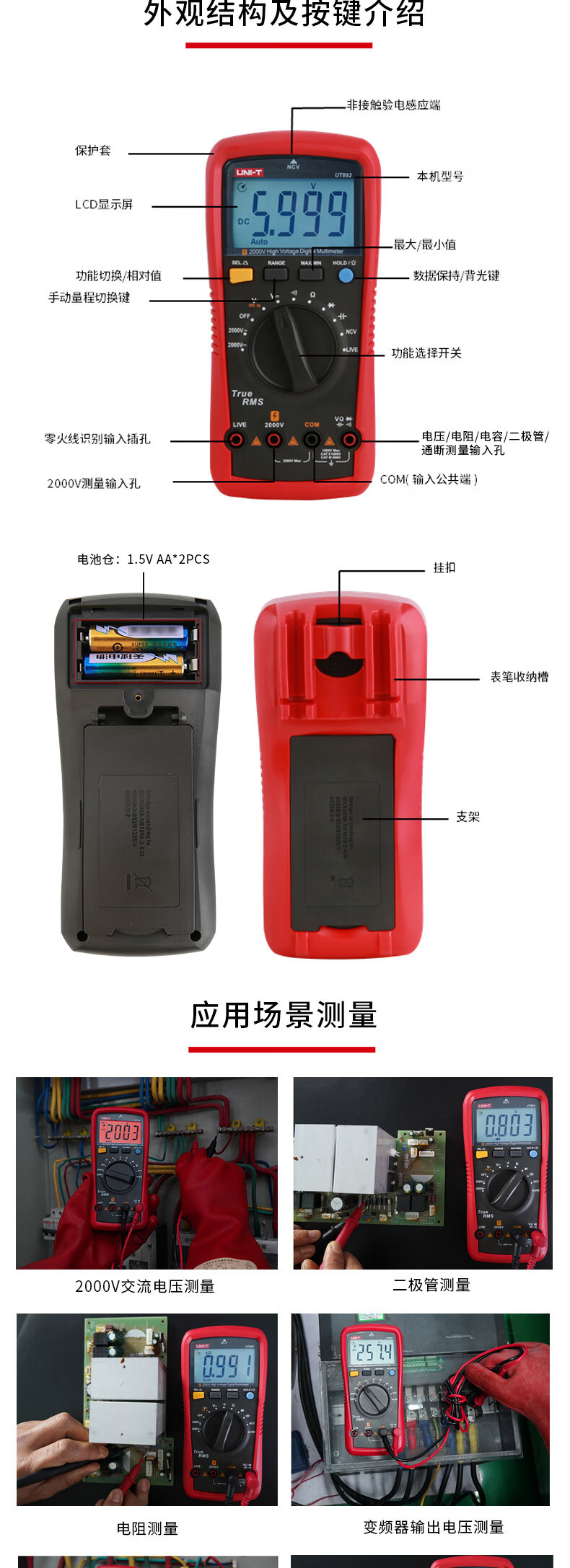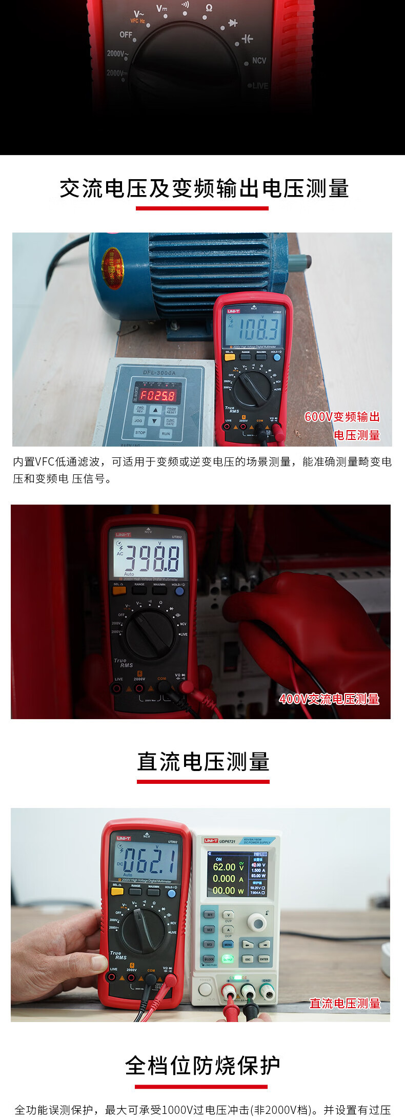 UNI-T UT892 2000V multímetro digital de alto voltaje de alta precisión anti-combustión inteligente AC / DC