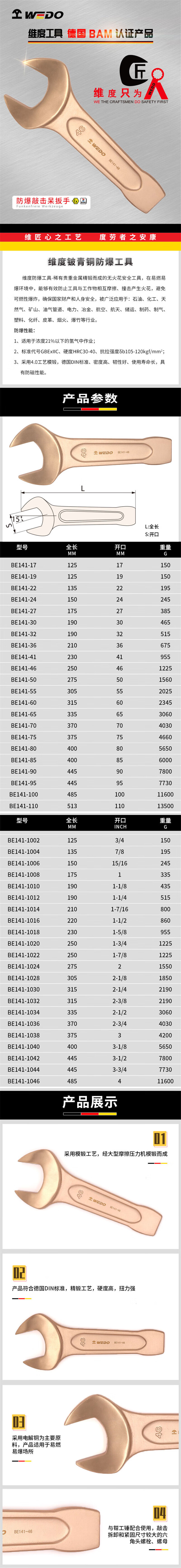 Dimensiones WEDO BE141 - 65 estándar alemán DIN133 llave de golpe a prueba de explosiones 65 mm