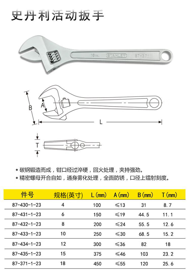 Stanley 87-432-1-23 Llave móvil 8 pulgadas