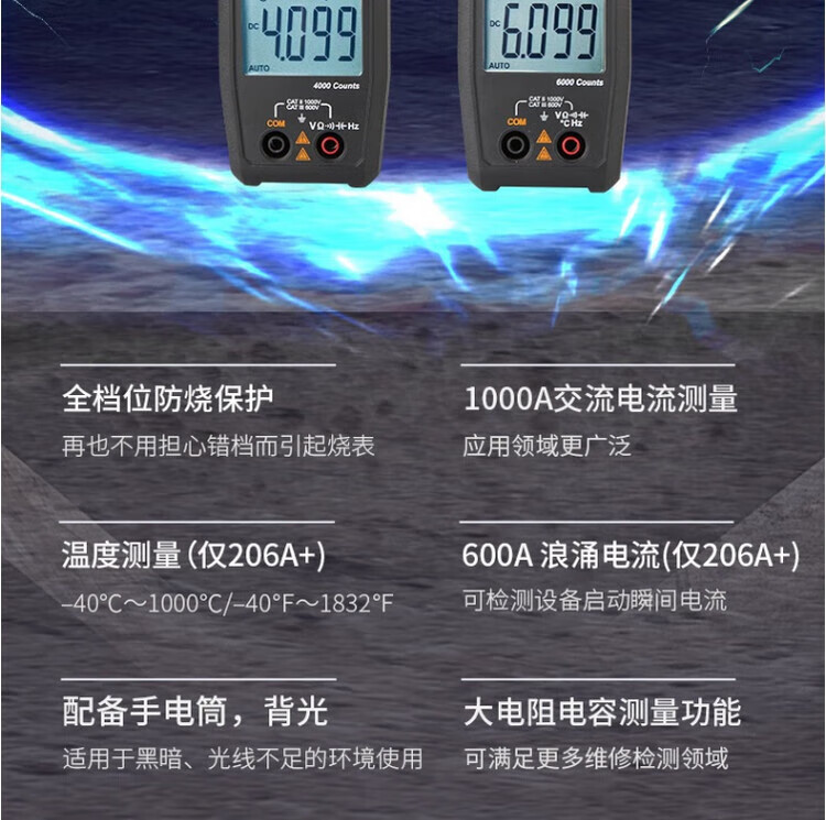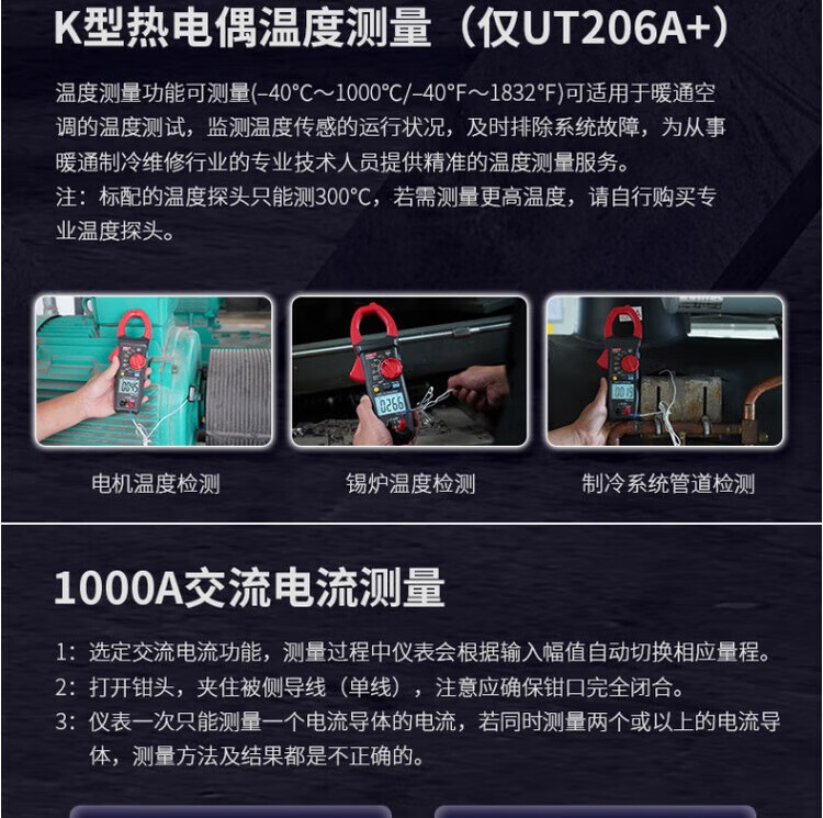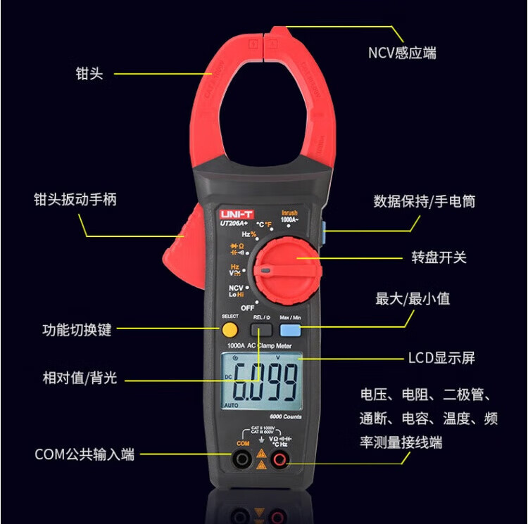 UNI-T UT205A + medidor de pinza de corriente alterna 1000A