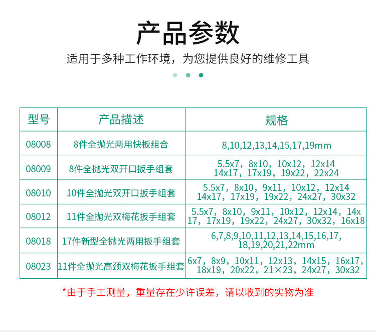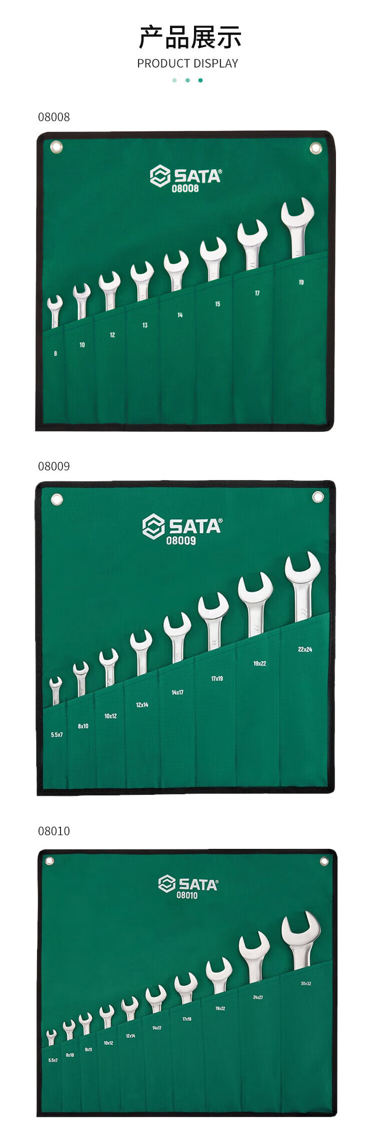 SATA 08009 Juego de llave de doble apertura totalmente pulido de 8 piezas