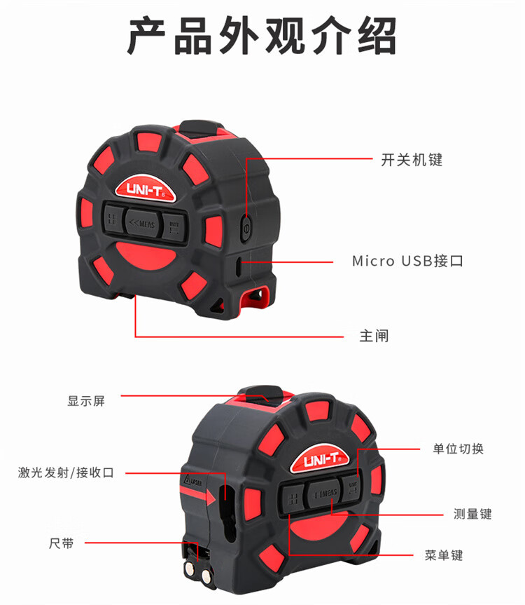 UID UNI-T LM60T medidor de distancia 60M + cinta de medición 5M 2 - en - 1 regla electrónica láser de mano