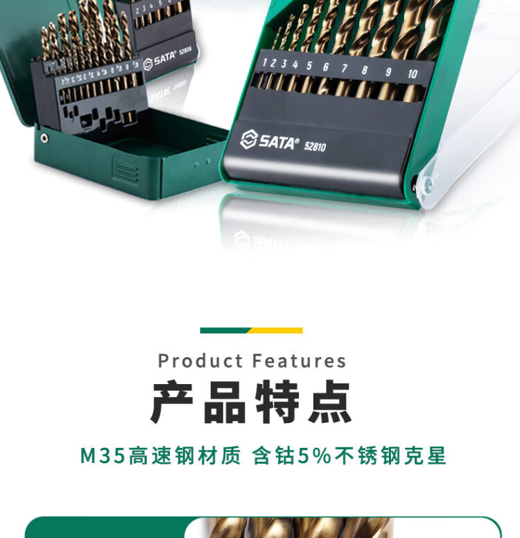 SATA 52819 19 piezas de taladro de torsión de mango recto que contiene cobalto