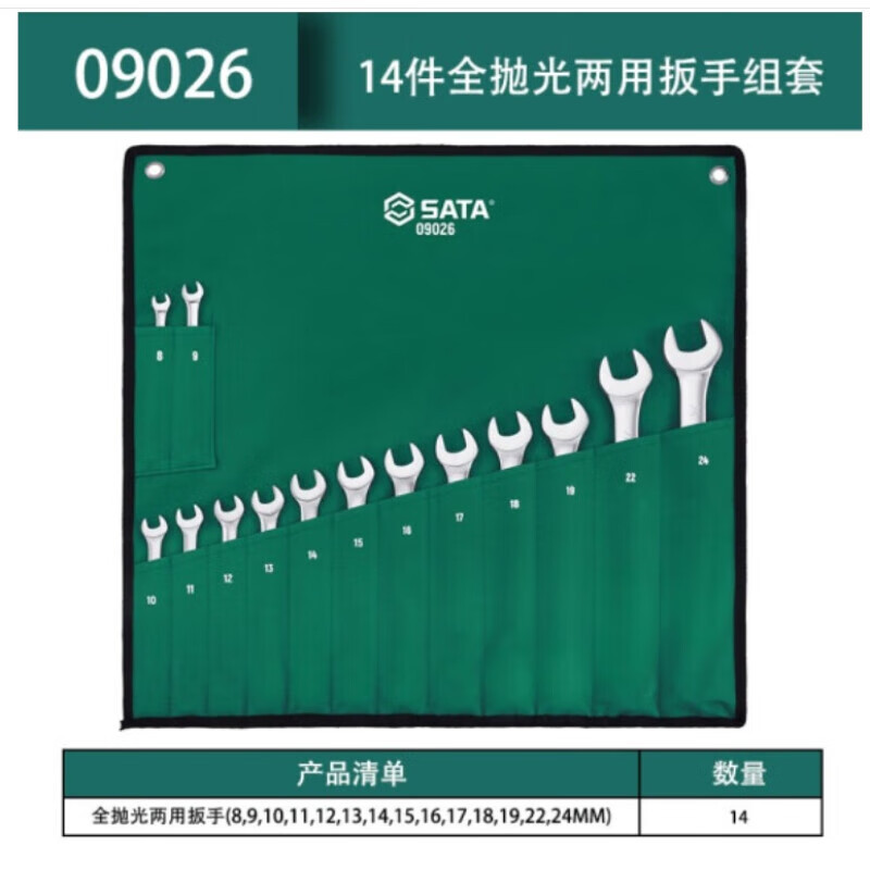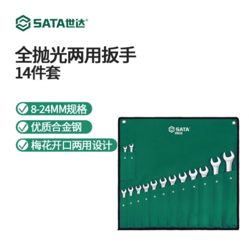 Shida SATA 09026 14 piezas de conjunto de llave de doble propósito totalmente pulido