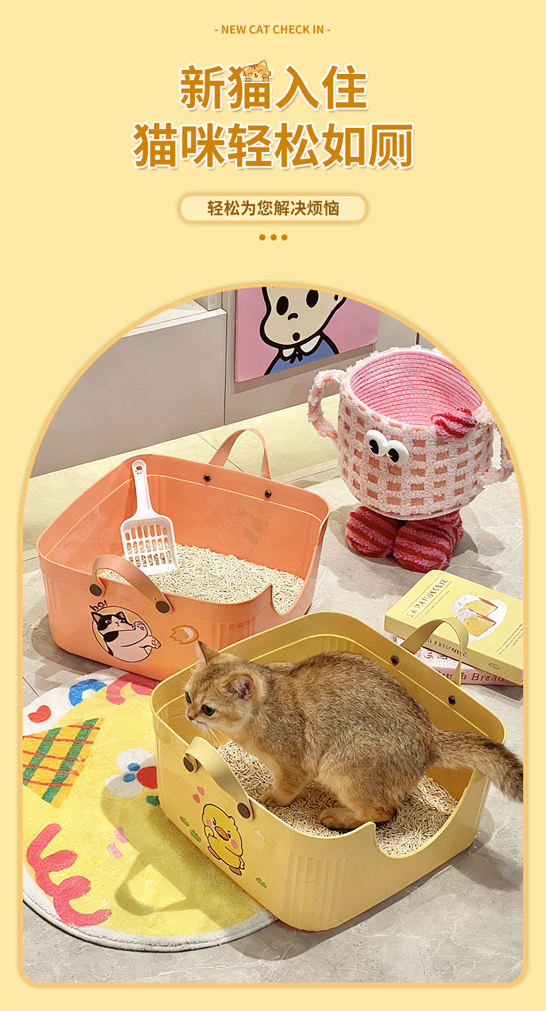 Baja de arena abierta para gatos de alta envoltura de borde anti-splashing inodoro para gatos semicerrado para enviar arena para gatos de pala de arena portátil para excrementos de gatos