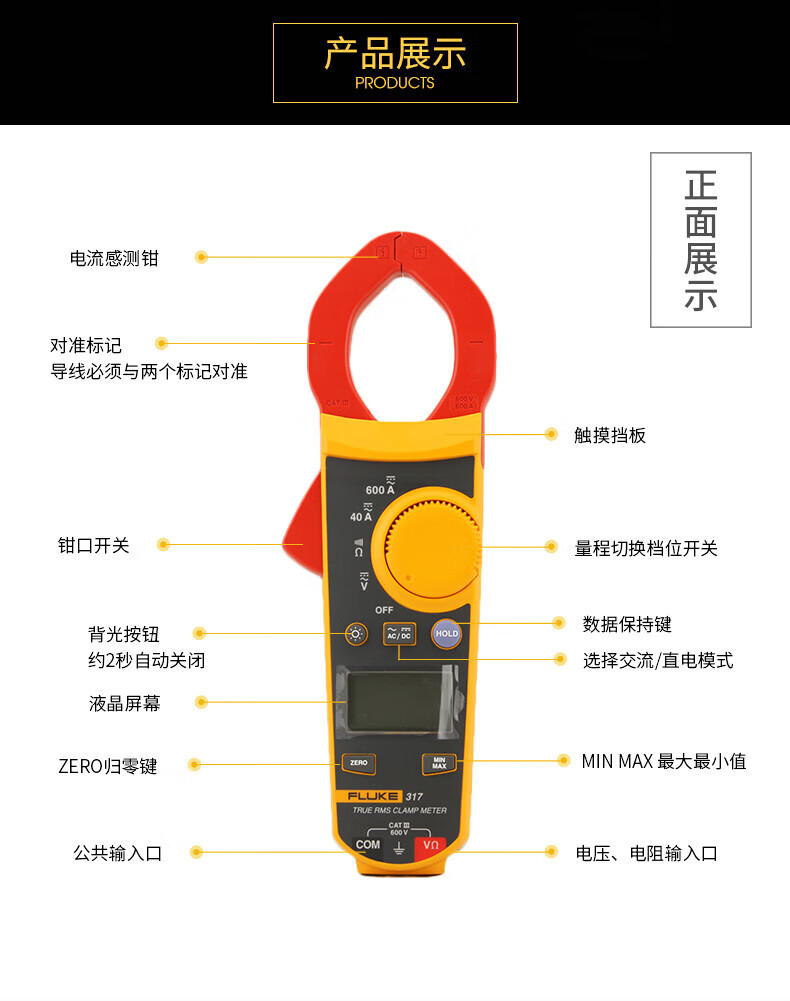 FLUKE FLUKE F317 Método de pinza verdadero valor efectivo multidímetro digital de pinza AC / DC medidor de gancho de sobretensión