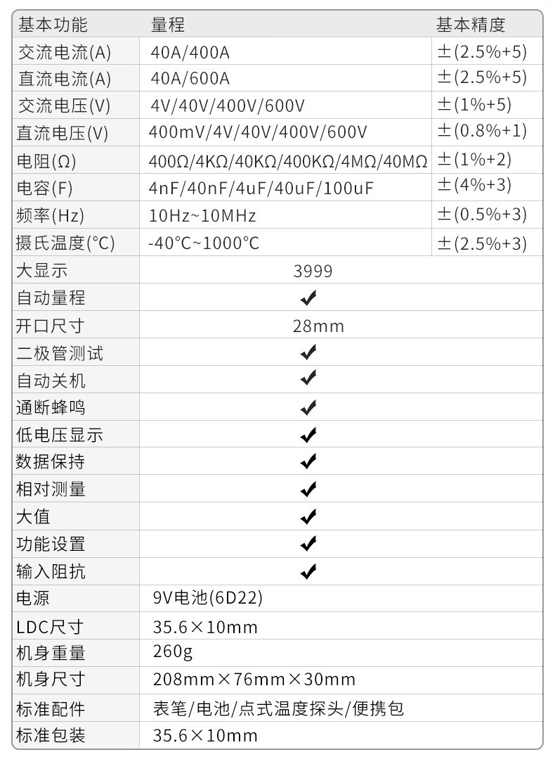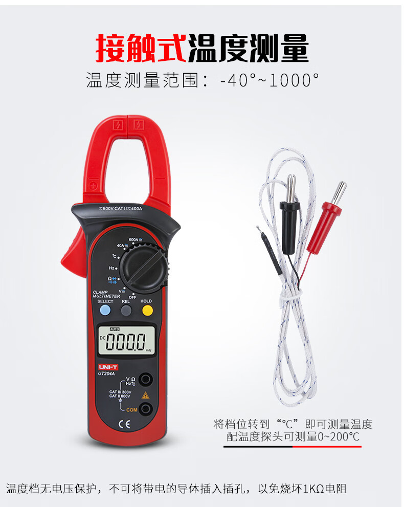 UID UNI-T UT204A reloj de pinza digital galvanómetro de pinza digital pluma de correa