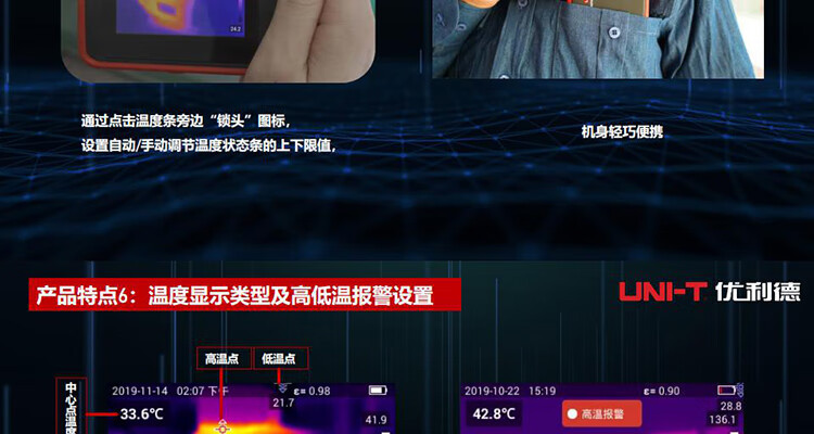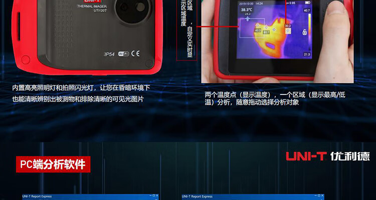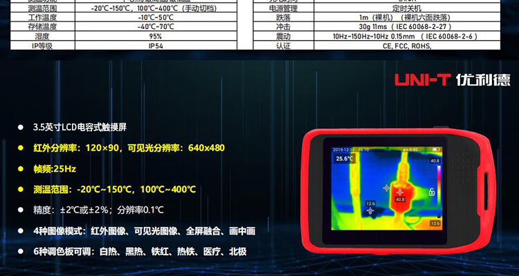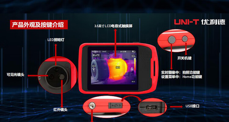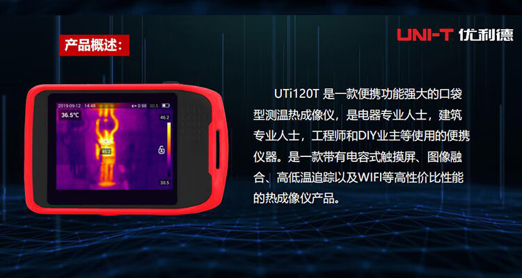 Ulide UNI-T UTi120T cámara termográfica infrarroja de alta definición capacitiva pantalla táctil termómetro infrarrojo