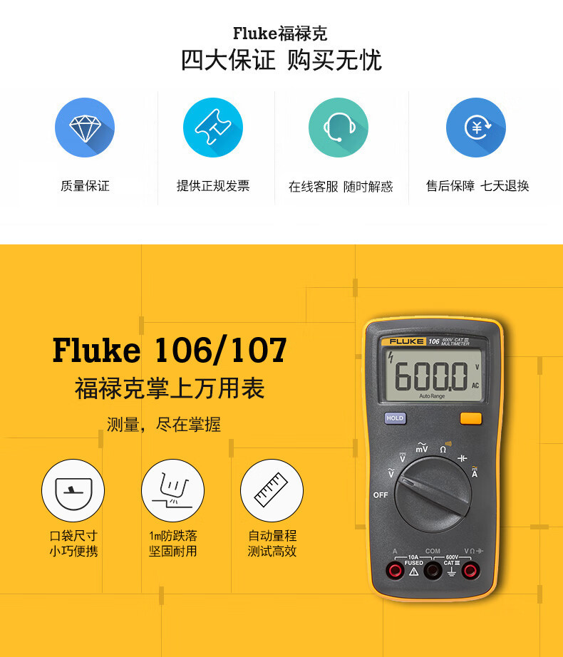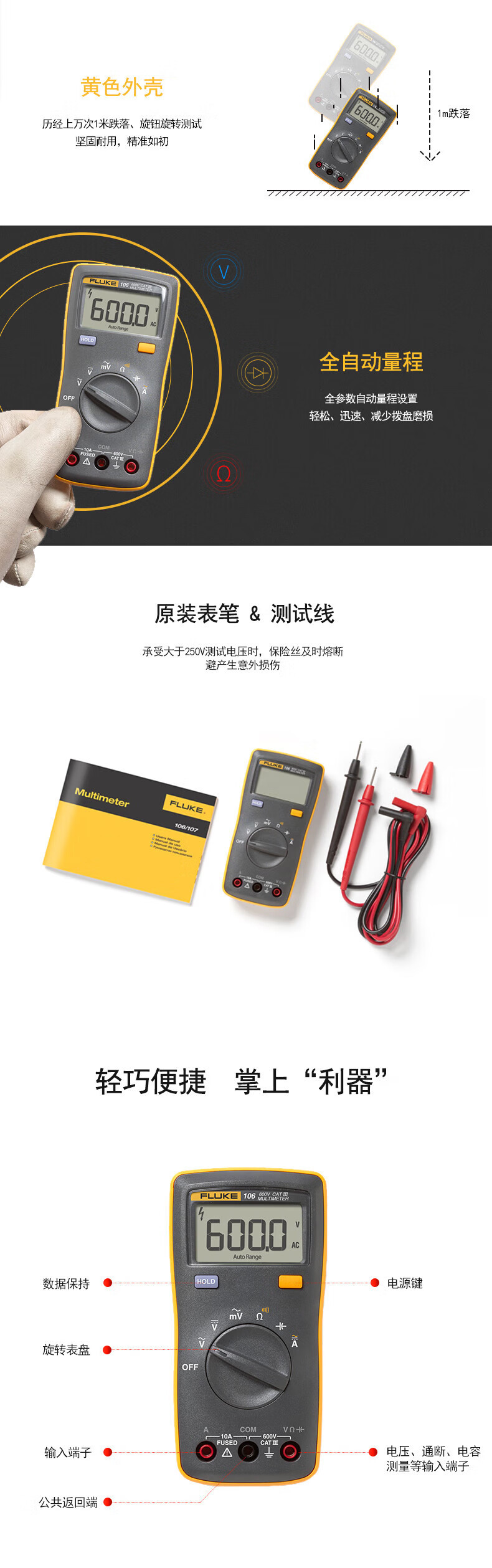 Fluke FLUKE-106 CHINA Multímetro digital Multímetro de mano Instrumento de rango automático
