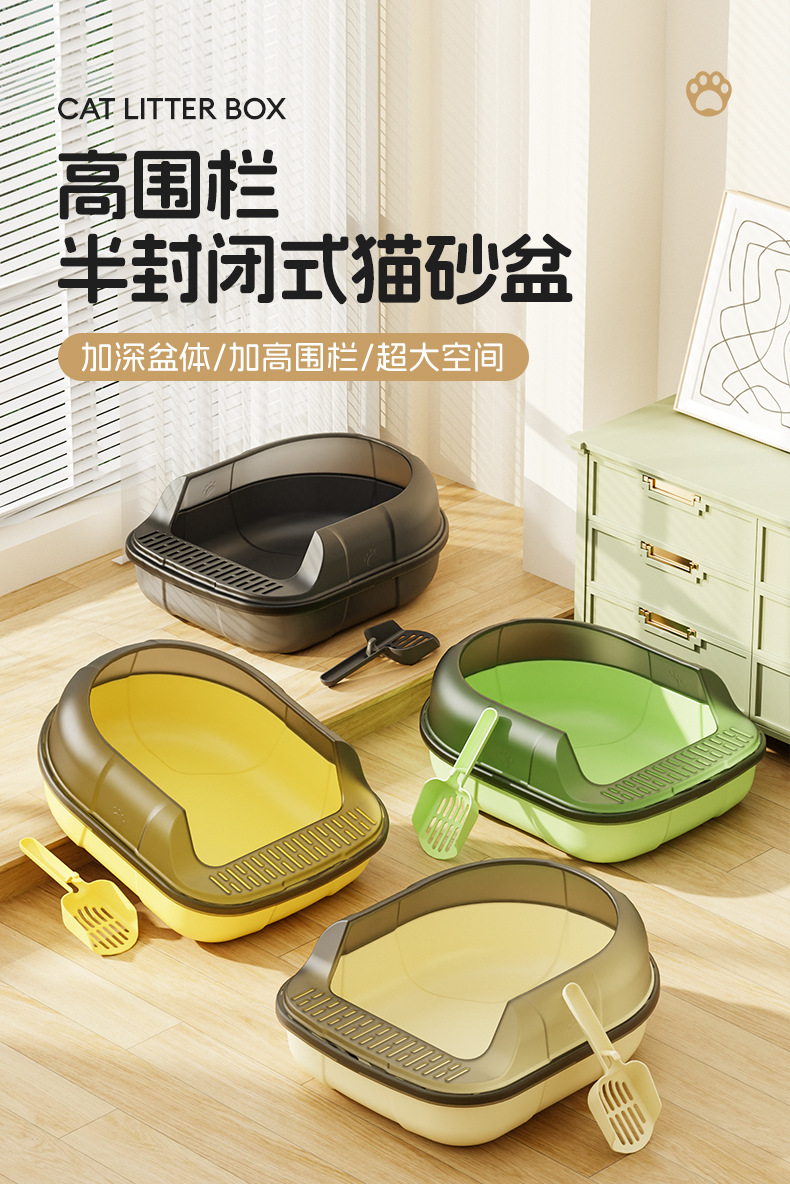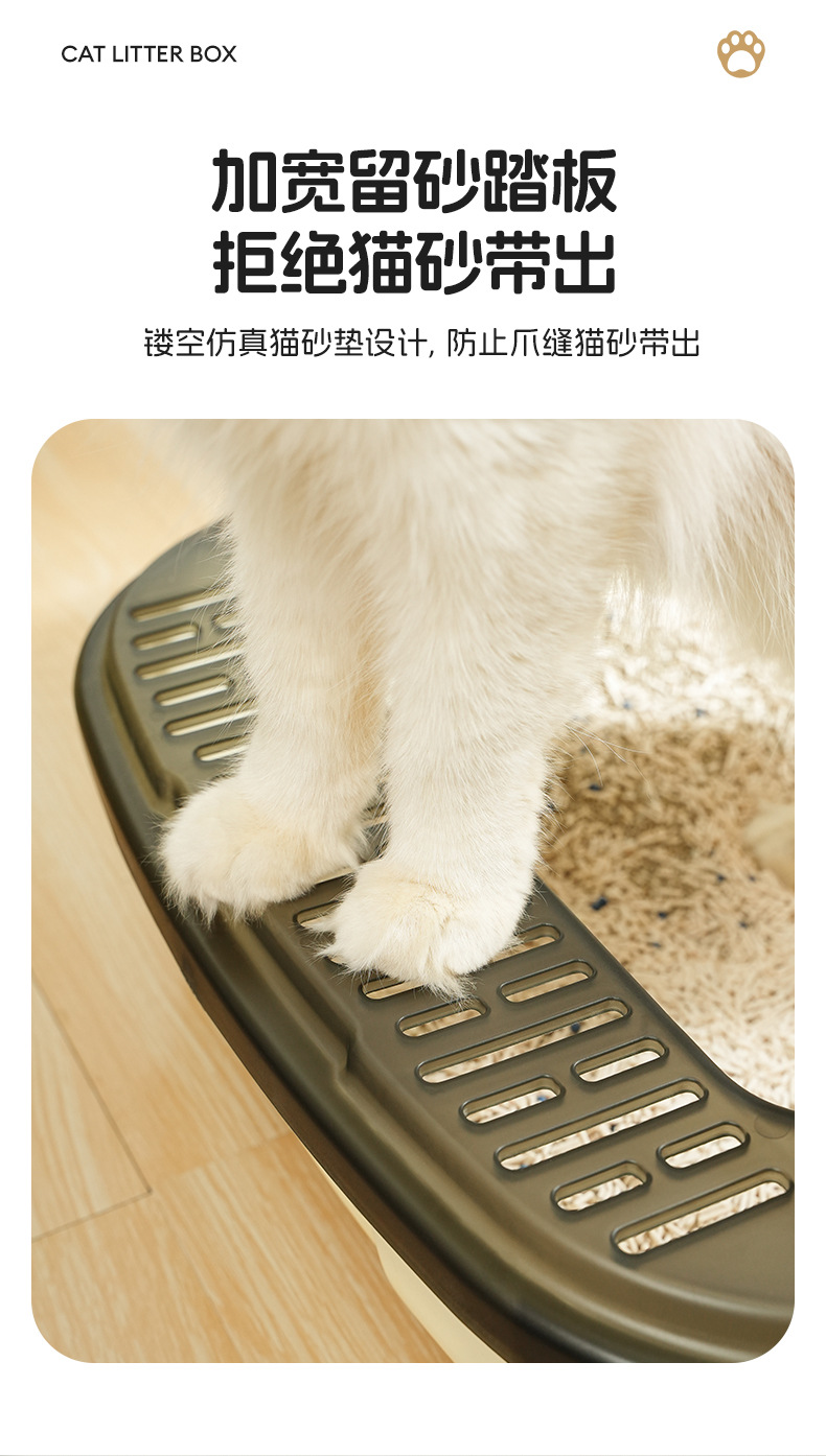 Taja de arena para gatos grande con inodoro semi-cerrado con malla de pedal de arena extra grande para gatos personalizados
