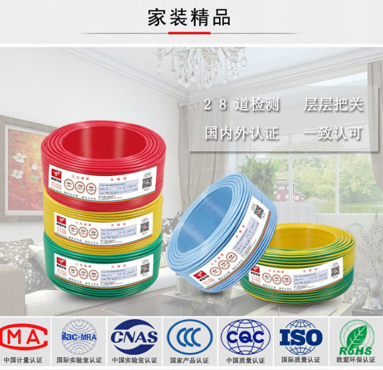 Chaoyang cable eléctrico ZB-BV alambre ignífugo estándar nacional de alambre de núcleo único alambre de aire acondicionado de cobre 4 cuadrado rojo 100 metros