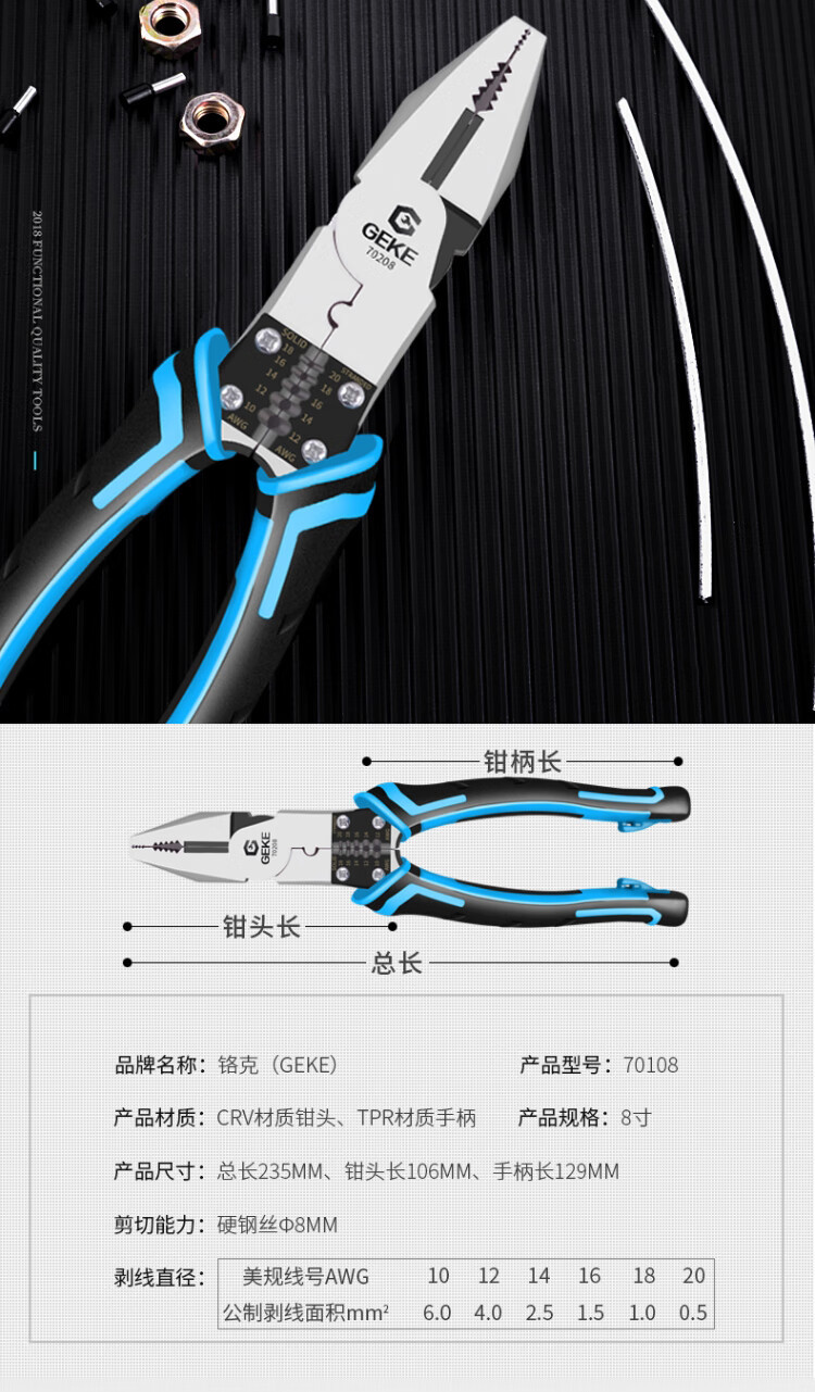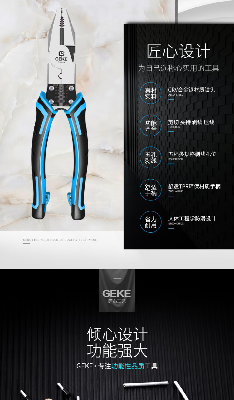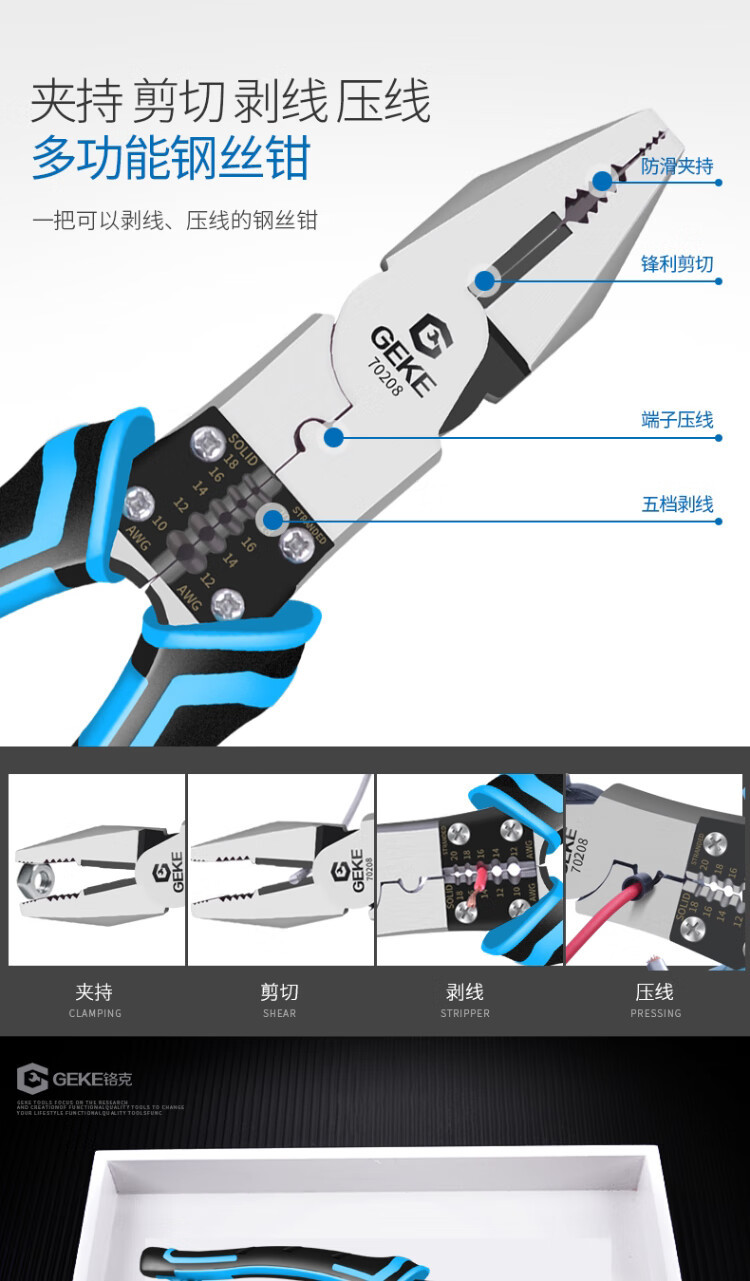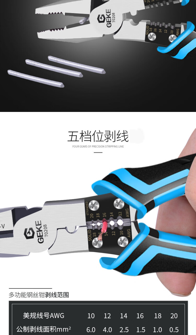 Cromo gramo GEKE gk123 pinzas de alambre pinzas de boca aguda pinzas de boca inclinada pinzas de boca plana 8 pulgadas pinzas de alambre pinzas eléctricas