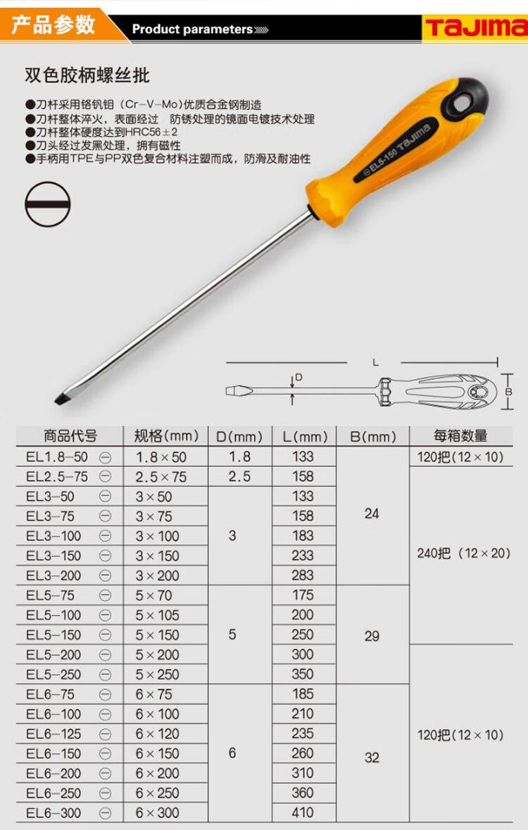 TAJIMA TAJIMA 1301 - 0915 EL6-300 (-) lote de tornillo de mango de goma