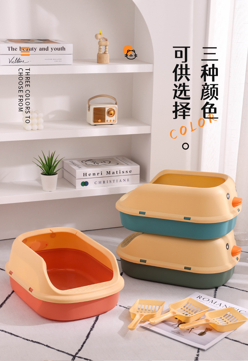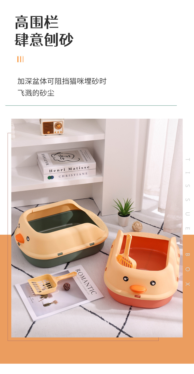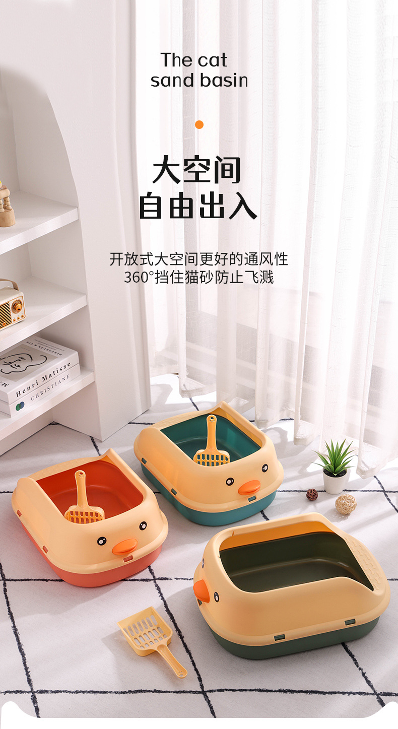 La caja de arena para gatos es grande para evitar sacar el pequeño pato amarillo, la caja de heces para gatos, el inodoro para gatos semicerrado, la caja de arena para gatos antisalpicaduras de gran tamaño
