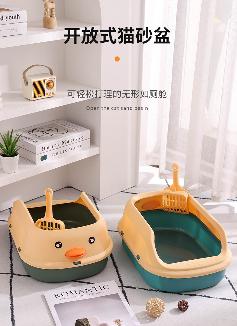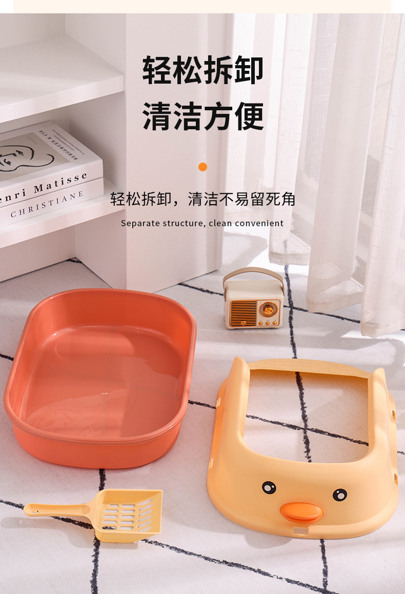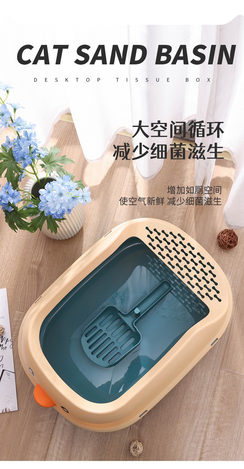 La caja de arena para gatos es grande para evitar sacar el pequeño pato amarillo, la caja de heces para gatos, el inodoro para gatos semicerrado, la caja de arena para gatos antisalpicaduras de gran tamaño