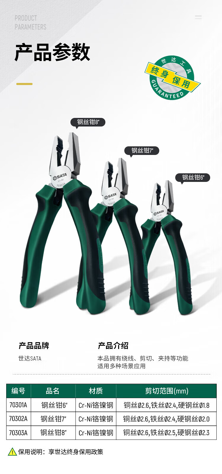 SATA 72742 G Series pinzas de alambre de punta8