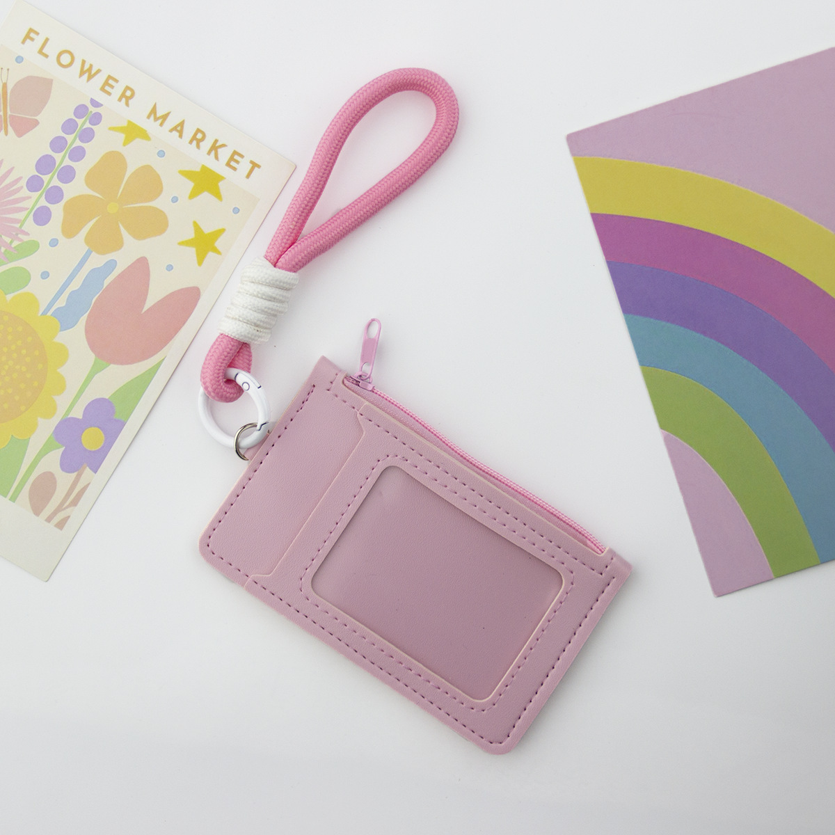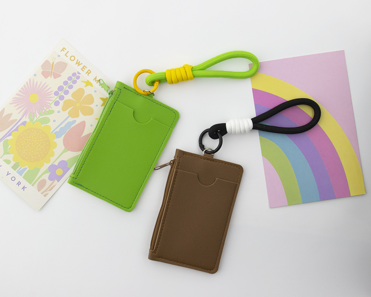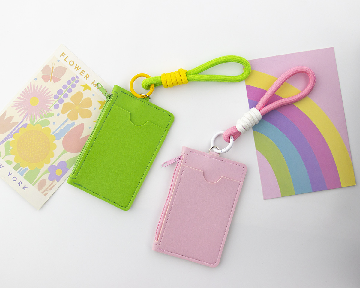 Monedero de tarjeta de dopamina de color sólido, cordón de mano, tarjetero portátil, bolso de cuero con cremallera unisex, comercio exterior