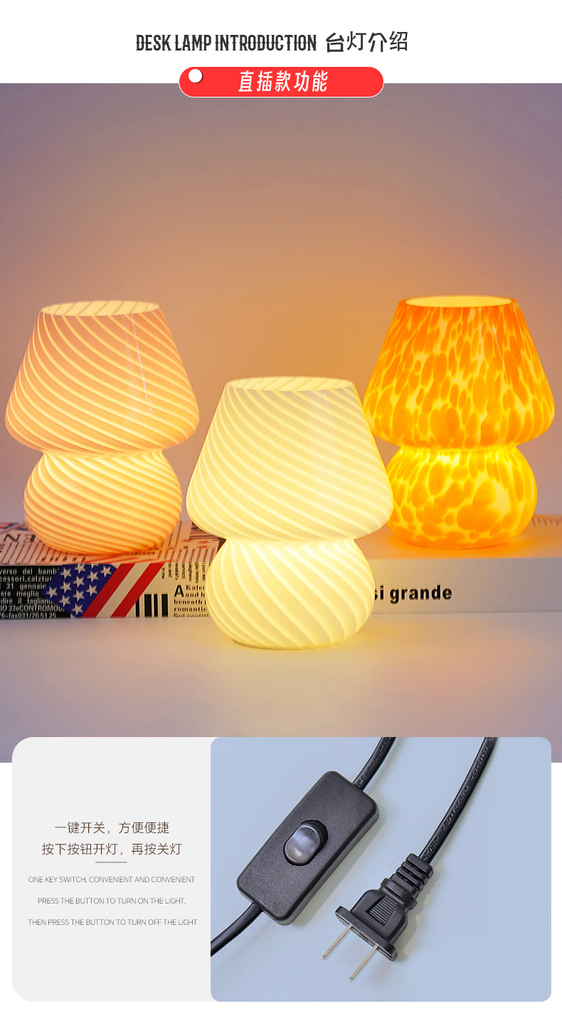 Lámpara de mesa de vidrio creativo Retro pequeño libro rojo lámpara de hongo casa de familia estudio ins luz de noche dormitorio lámpara de noche para dormir