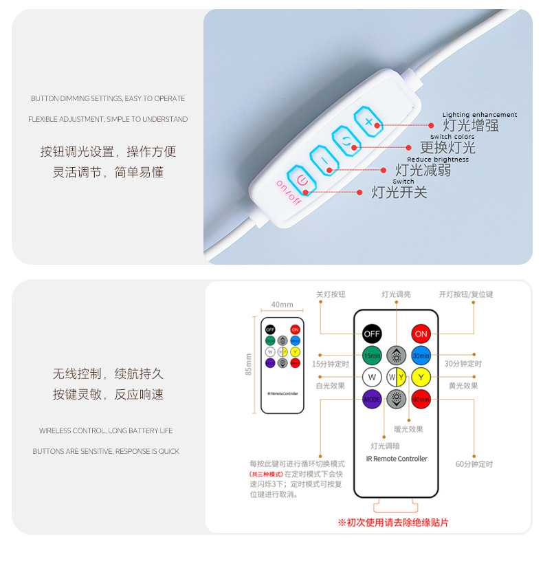 5V USB (colorido) control remoto atenuación rápida y lenta