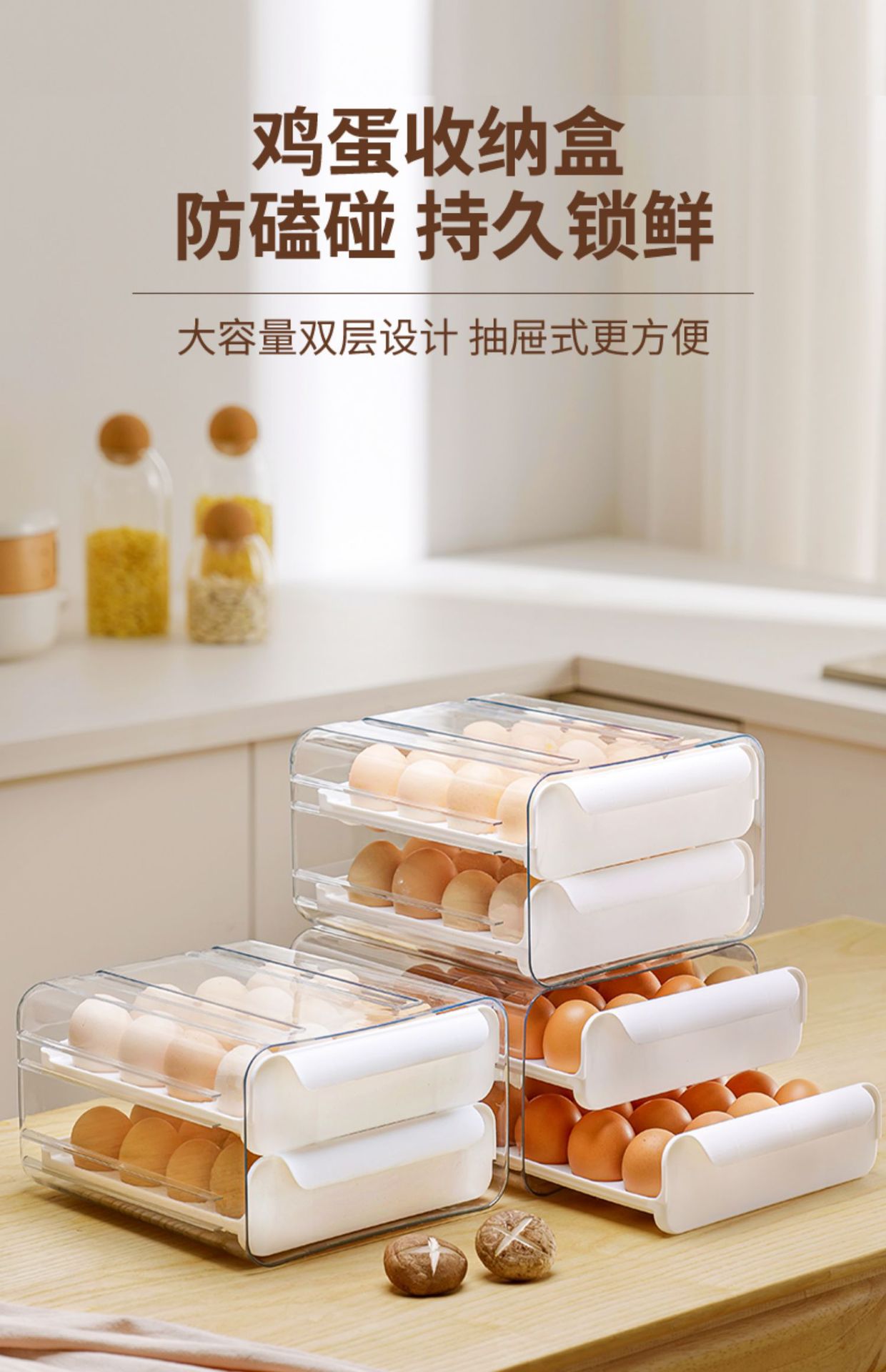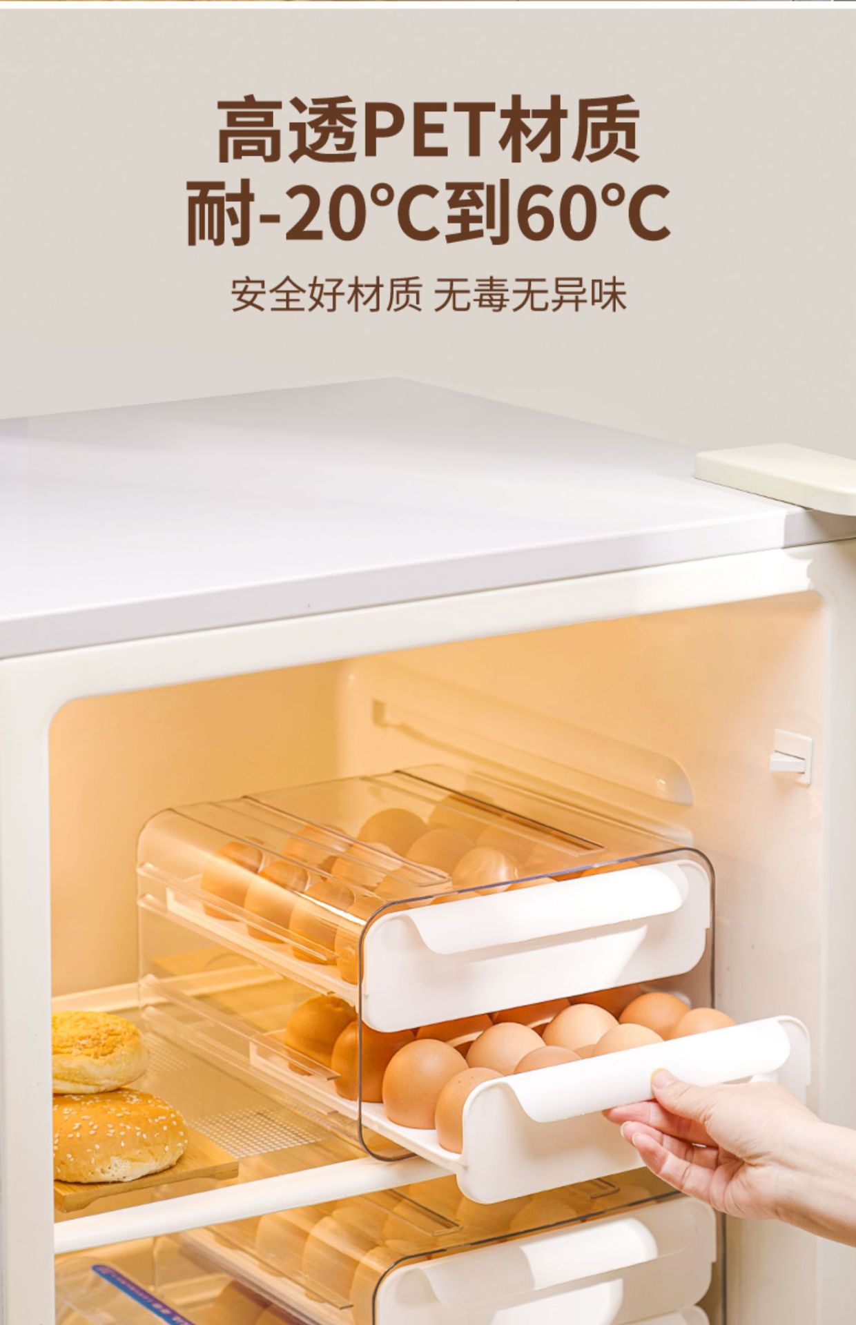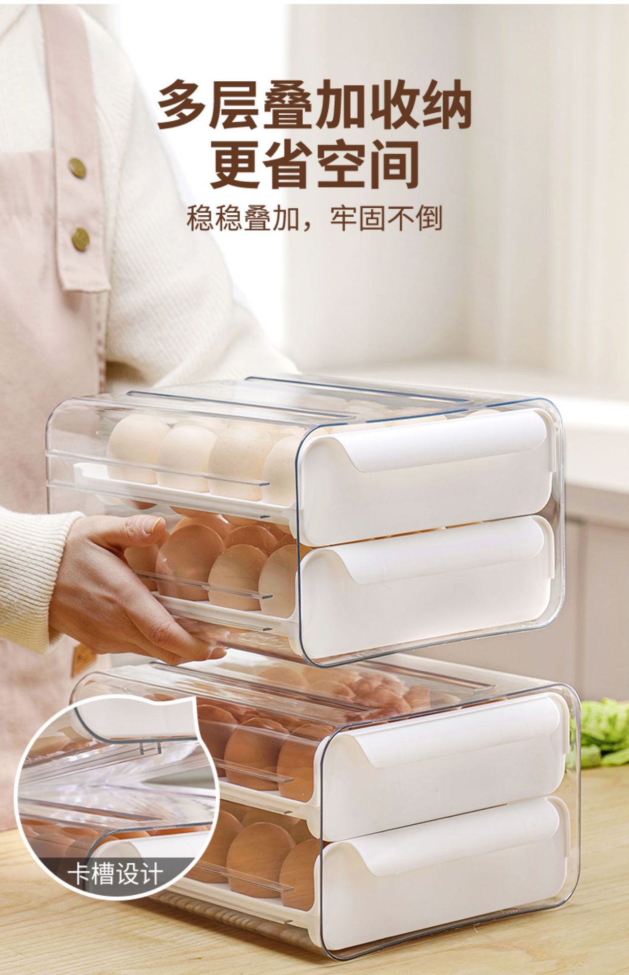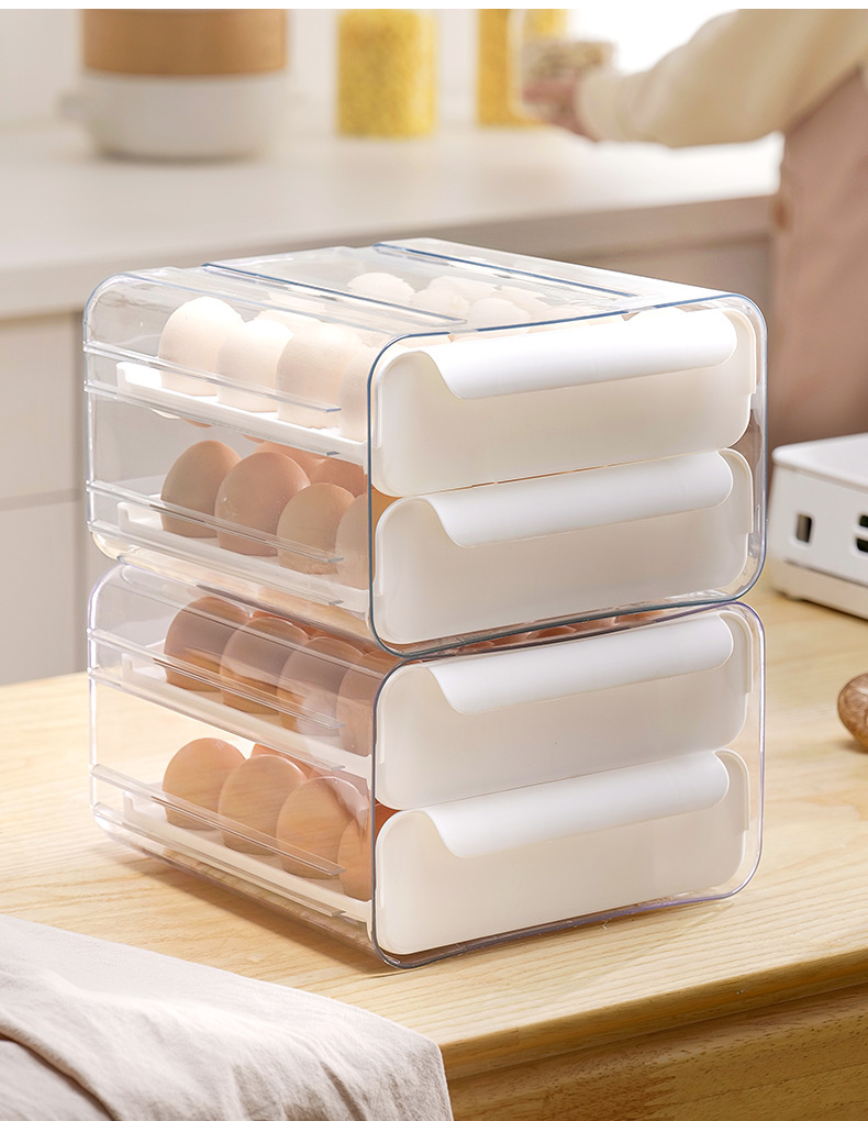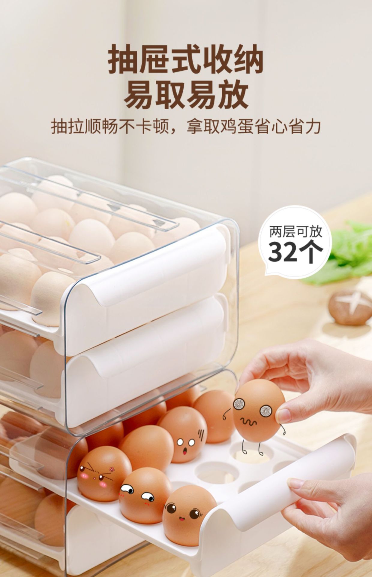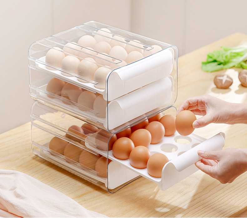 Refrigerador doméstico, caja de huevos de cocina, caja de huevos de cajón transparente, caja de preservación de huevos de cocina, gran capacidad de huevos de rotación