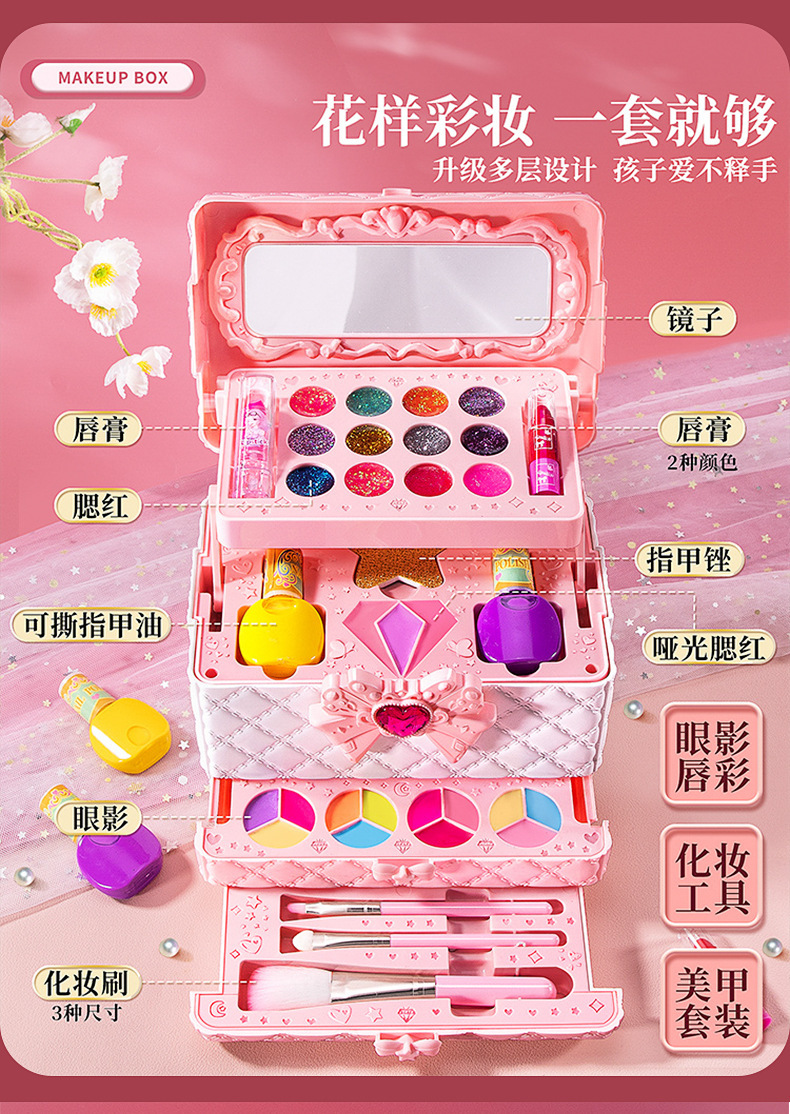 Nueva música para niños, maleta de cosméticos, juego de juguetes, caja de maquillaje de princesa no tóxica, niña, cumpleaños de la casa