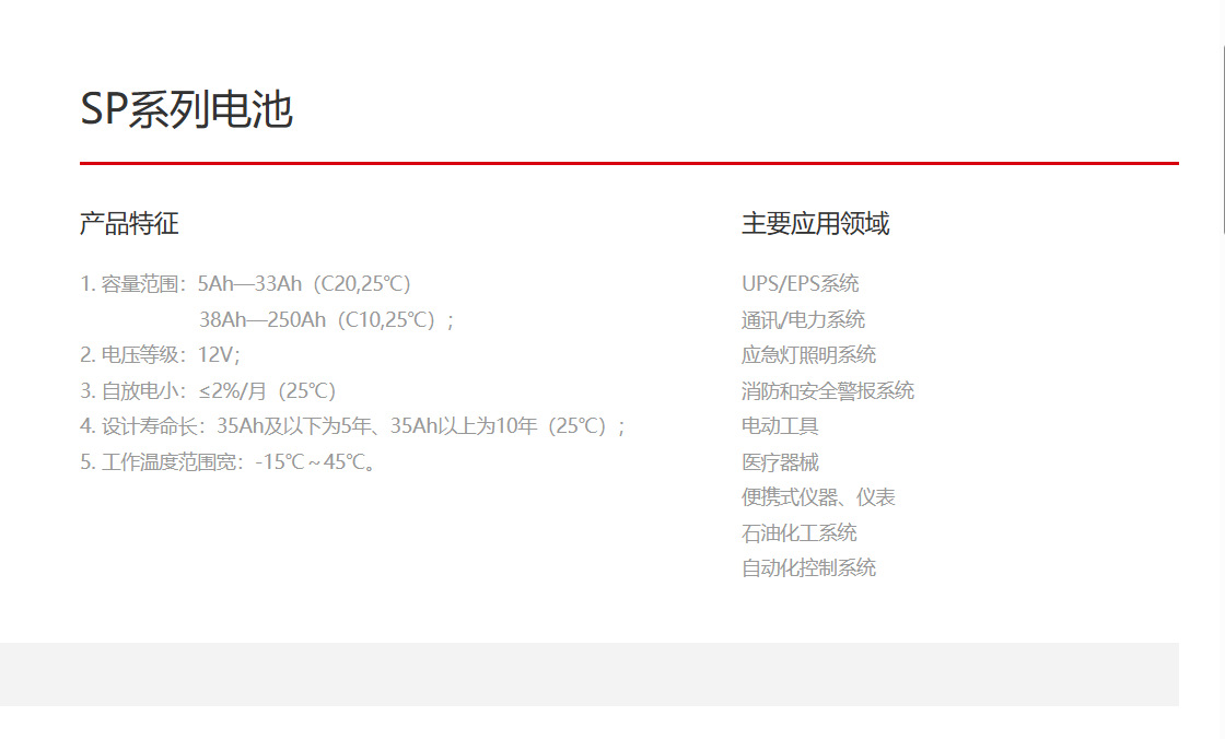 Batería de plomo - ácido de la serie SP - 12V para comunicación de la estación base / EPS / UPS
