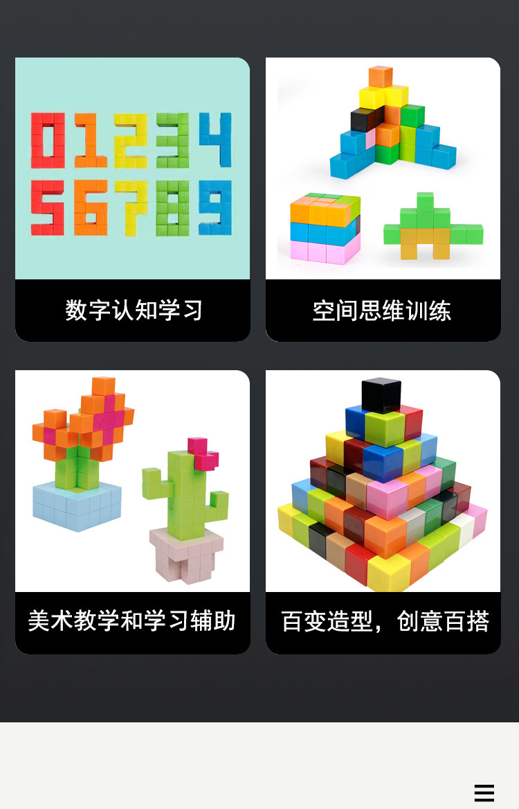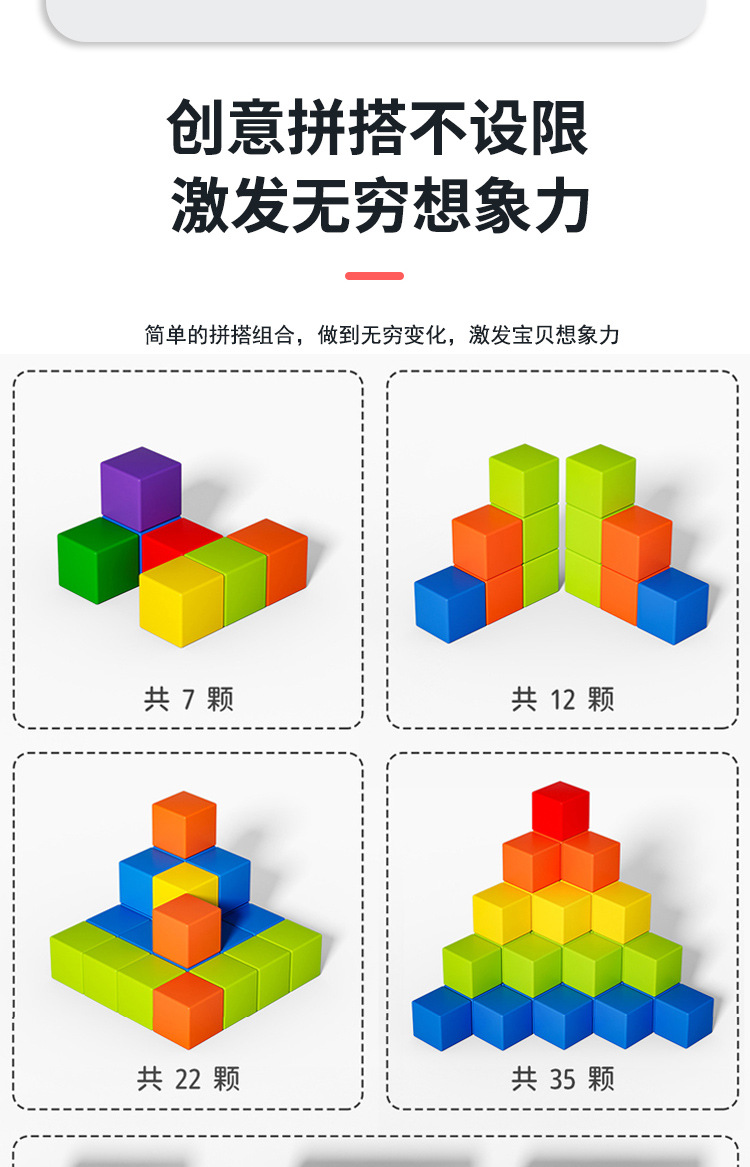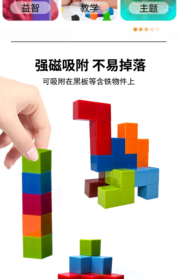 Bloques de construcción magnéticos cuadrados de 2,35 cm, cubo geométrico, material didáctico de matemáticas para escuela primaria, rompecabezas magnético de color sólido con fuerte imán