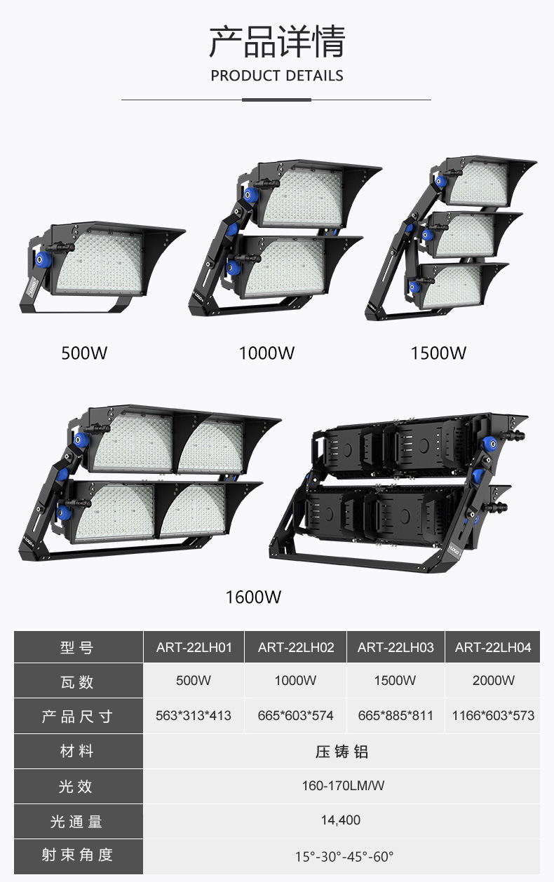 Transfronterizo LED módulo túnel de luz al aire libre sitio de construcción cuadrado Luz de inundación de alta potencia profesional estadio luz fabricante