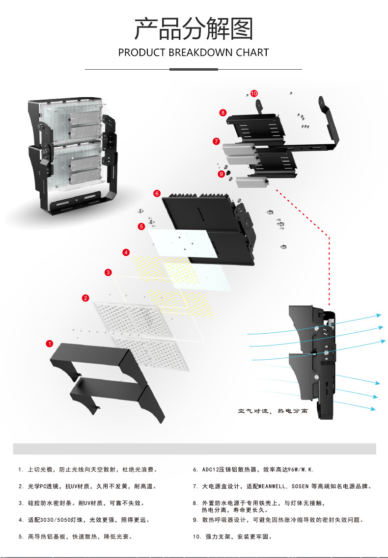 LED módulo de ingeniería impermeable al aire libre luz del estadio Túnel de alta potencia luz a prueba de explosiones iluminación de cartelera Luz de inundación