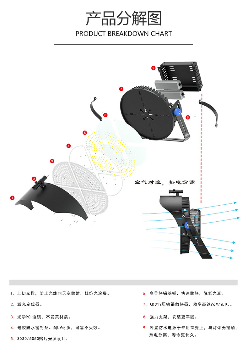 Lámpara de grúa torre LED estadio al aire libre lámpara de luz fuerte de alta potencia ingeniería muelle al aire libre Luz de inundación impermeable al por mayor