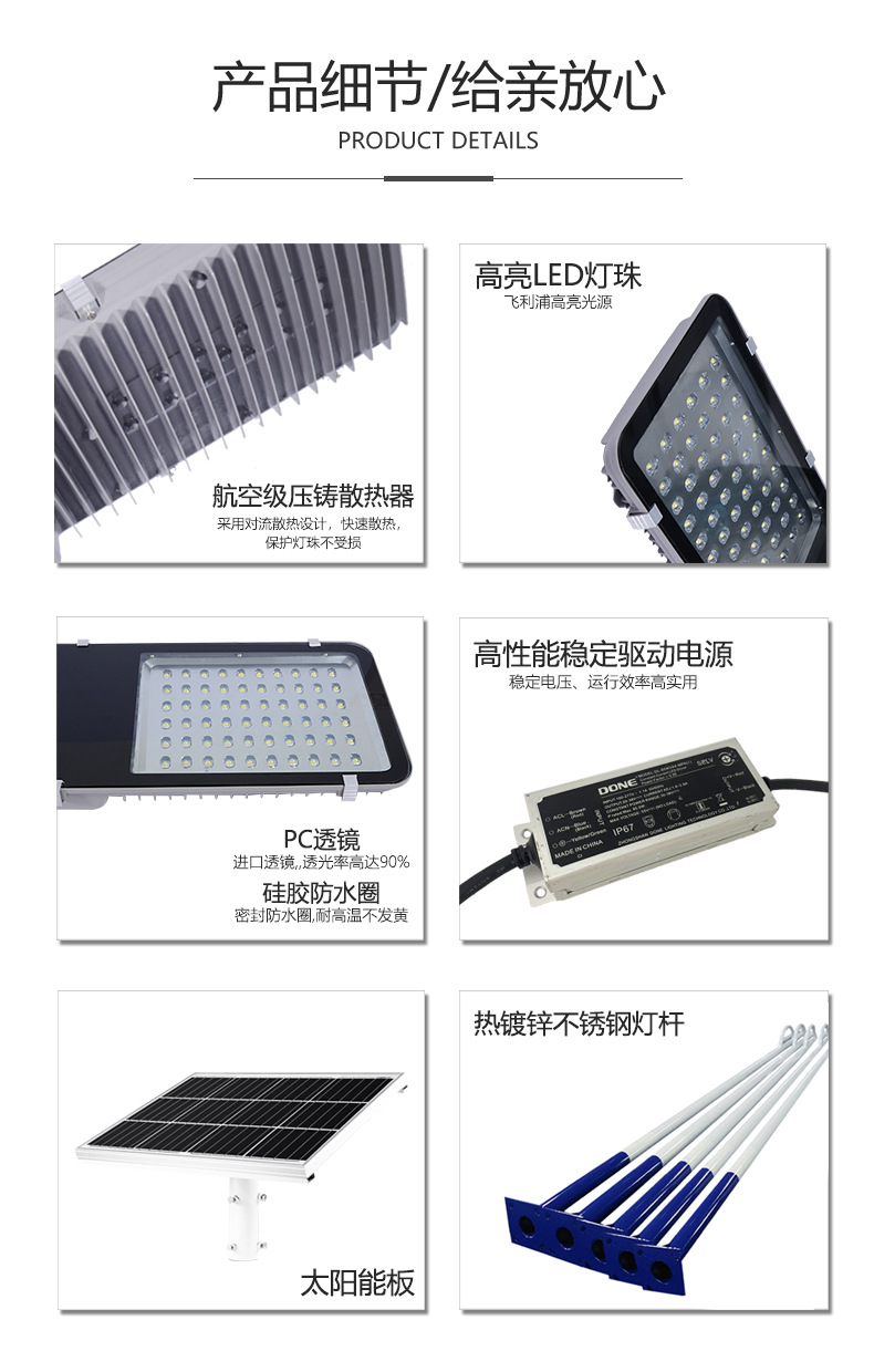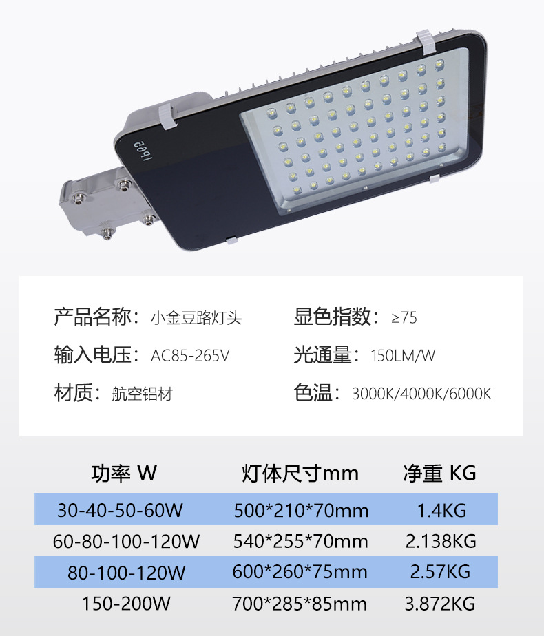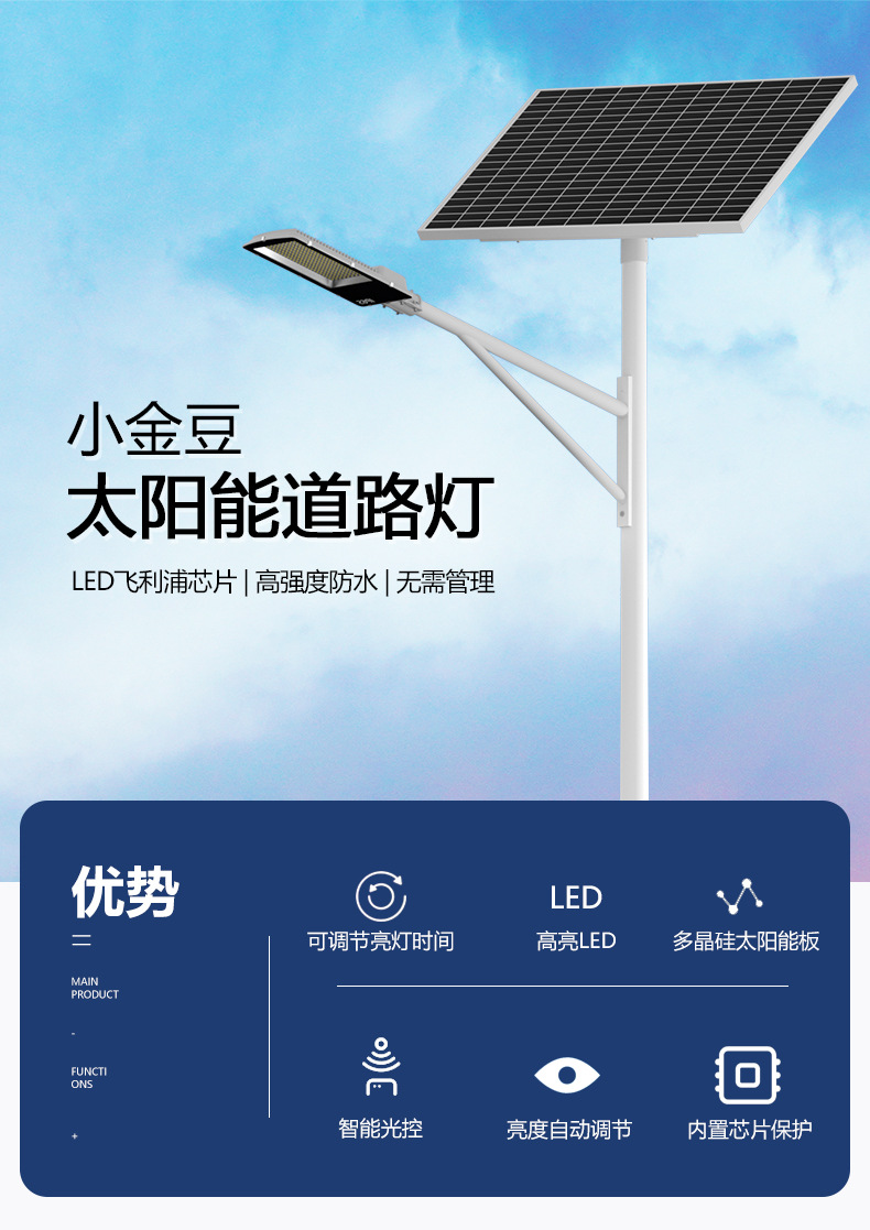 Lámpara de calle de fácil instalación simple fábrica personalización lámpara de calle de luz solar dividida de frijol dorado