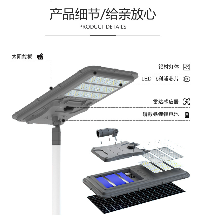 LED resalte módulo lámpara de calle ángulo ajustable interruptor de inducción lámpara solar al aire libre patio integrado lámpara de calle